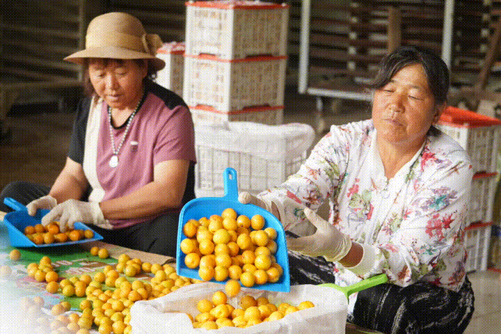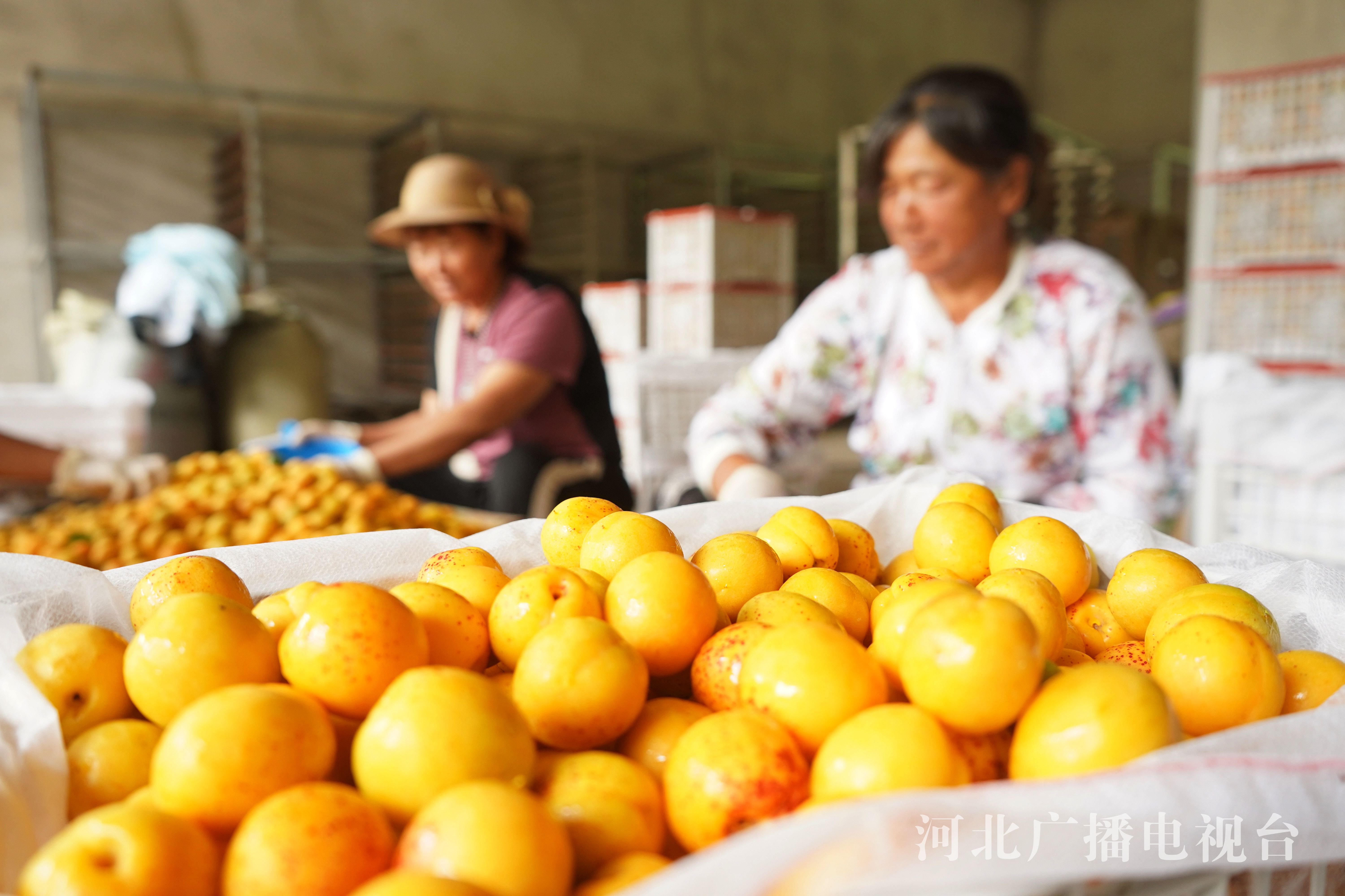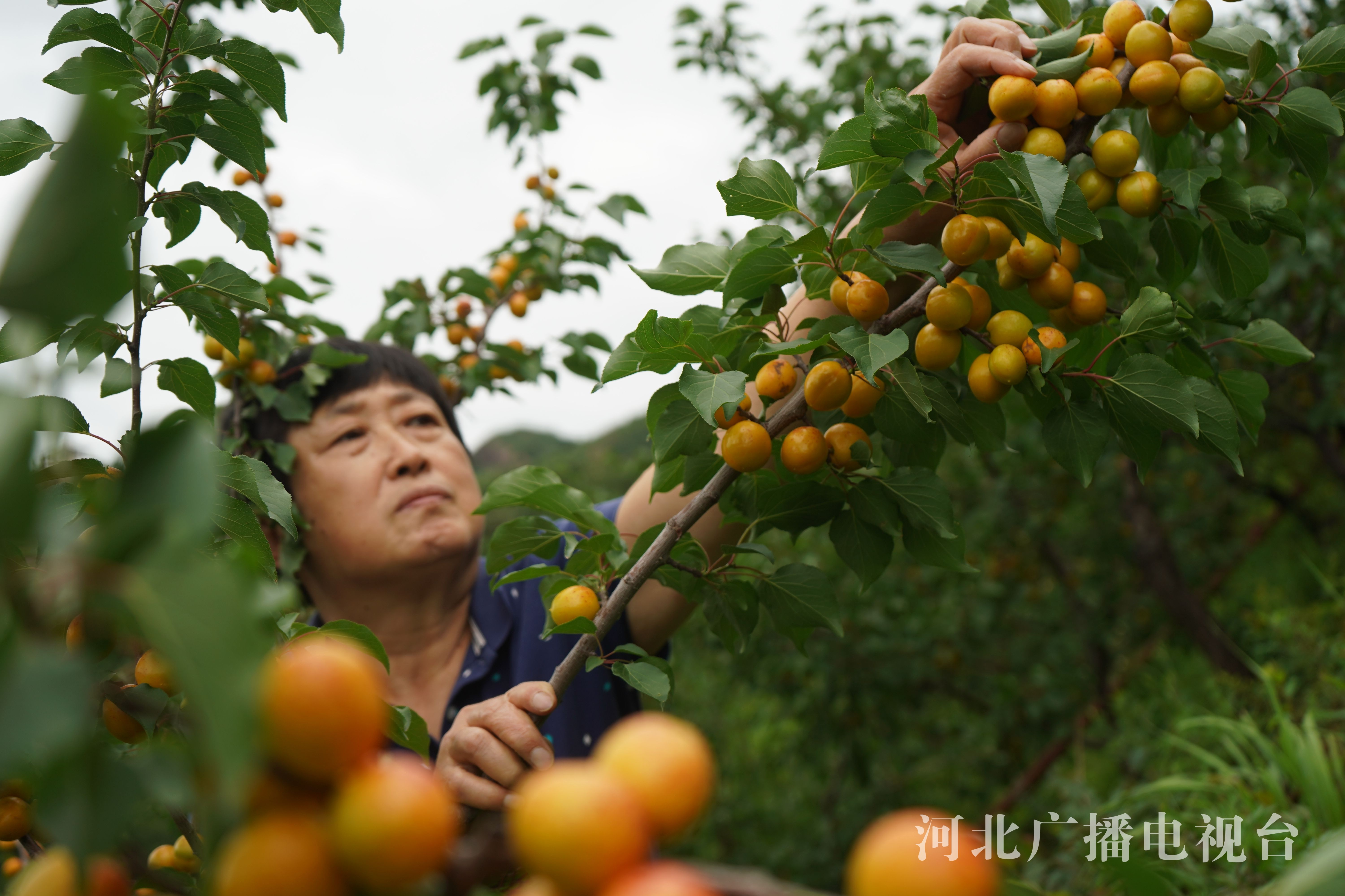 冀时客户端报道 (河北台李帅 通讯员梁志青)近日,承德市滦平县付营子镇邢家沟门村珍珠油杏种植基地,农民正在进行采摘珍珠油杏和分拣工作,一个个忙碌的身影构成了邢家沟门村最美的一道风景线。