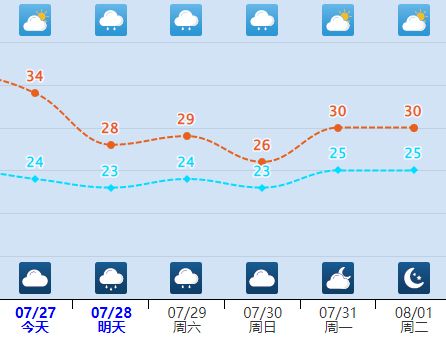 随着雨水势力的扩张,预计明天高温就会销声匿迹,届时最高气温回落至28~33℃左右,但相对湿度大,闷热感难以彻底消除。
