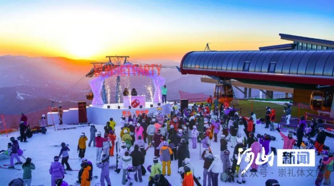 23日黄昏时分,雪如意滑雪山顶的落日狂欢派对拉开帷幕,雪友们欢聚在炫酷舞台前,合着专业音乐欢呼,沉浸式感受冰雪与光影交织的魅力。