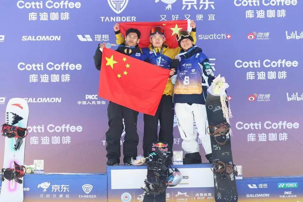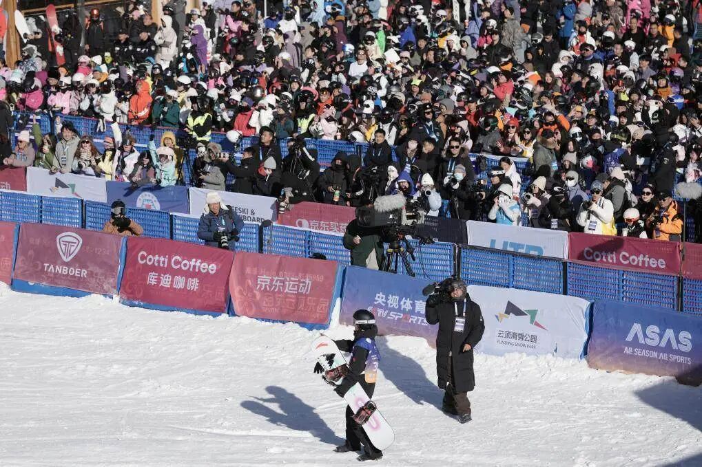 11月29日,国际雪联大跳台世界杯云顶站单板滑雪男子组决赛在河北省张家口市崇礼区云顶滑雪场进行。新华社记者 卢星吉 摄