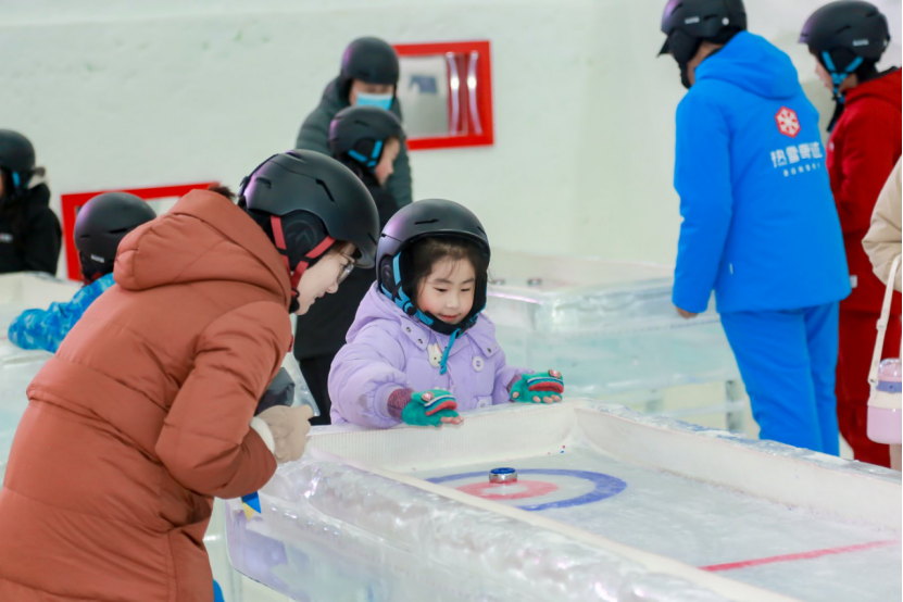 启动仪式后,“端球大师”大众趣味赛与冰雪亲子趣味运动会便即刻开赛。赛场上,选手们斗志昂扬、奋勇争先;赛场边,家长们热情呐喊、全力助威,亲子协作的温馨瞬间与冰雪运动的蓬勃活力相互交织,现场氛围持续升温,迅速推向高潮。刚带8岁儿子完成比赛的市民王女士由衷称赞:“新年第一天能参与这样的活动特别有意义,孩子不仅体验到了滑雪的乐趣,还交到了新朋友,而且惠民政策特别划算,真的很贴心。”