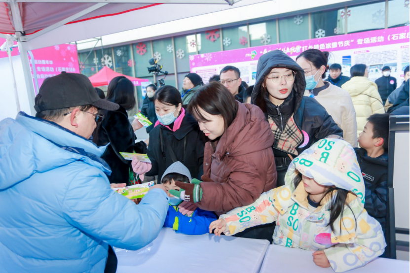 热雪奇迹正门广场上,石家庄冰雪嘉年华资源联动推介展吸引了众多市民游客驻足,集中展示了石家庄市“一家冰场+八家雪场”的核心特色与赛事节庆安排。广大运动爱好者还可通过“石家庄体育”微信公众号了解活动详情、报名参与赛事及领取优惠福利,共同奔赴这场冬日冰雪盛宴。