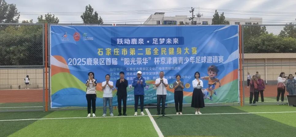 金秋送爽,绿茵沸腾。10月的鹿泉洋溢着青春与活力,2025年鹿泉区首届“阳光荣华”杯京津冀青少年足球邀请赛开幕式于10月2日上午举行。来自全市以及其他多个地区的23支青少年足球队齐聚于此,以足球为媒,共赴一场关于梦想、拼搏与友谊的体育盛会。