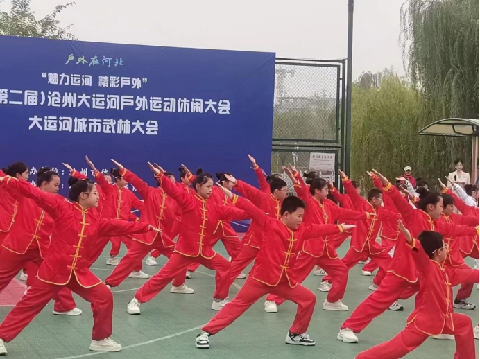 10月28日,“魅力运河 精彩户外” 第二届沧州大运河户外运动休闲大会 —— 大运河城市武林大会在沧州大运河公园举行。300 名参演人员、7 个精品节目在大运河畔轮番上演,为现场观众呈现了一场传统武术与现代活力交织的体育盛宴。