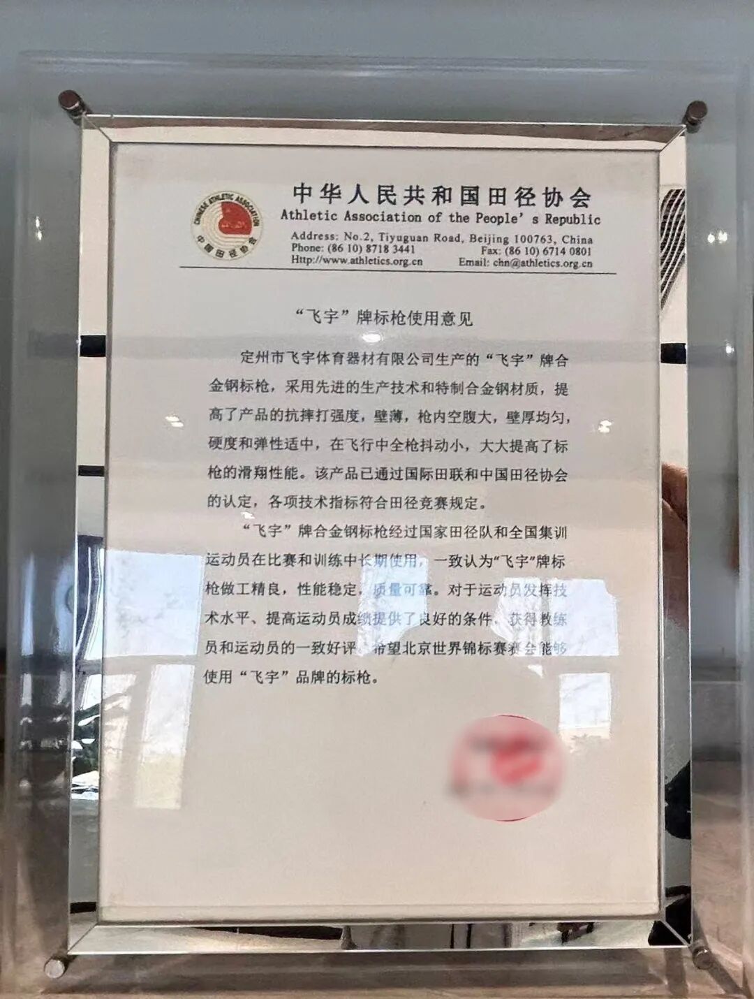 品质的坚守离不开技术的支撑。为保障产品质量,该公司大力引进专业技术人才,配备先进的生产设备,以科学理论为依托深耕技术研发,历经无数次试验与打磨,最终取得了多项突破性成果。其中,自主研发的合金钢标枪凭借抗摔打、强度高、壁薄、硬度与弹性适宜等优势,成功打破国外技术垄断,填补了国内相关领域的技术空白。目前,国内仅有河北飞宇体育发展有限公司具备该产品的生产能力,且该产品已通过世界田径(WA)和中国田径协会(CAA)的双重权威审定,成为专业赛事认可的优质装备。