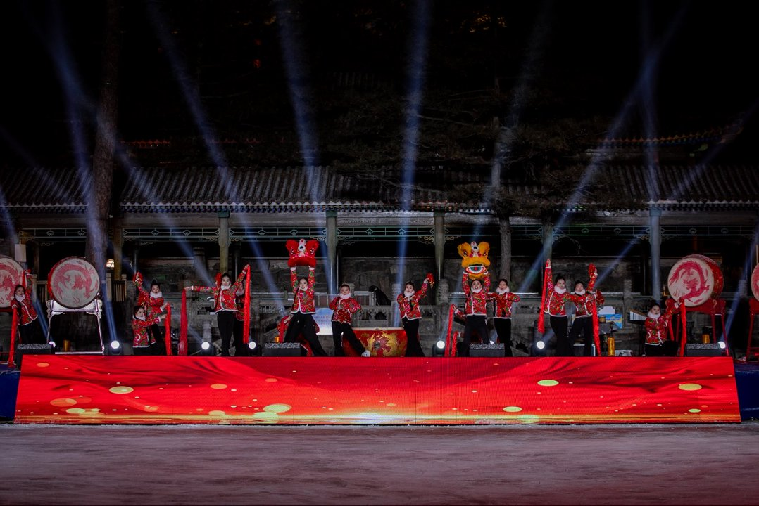 开幕式现场气氛热烈,恢宏的避暑山庄流光溢彩。金山亭前,依托湖面打造的天然冰场在灯光映照下美轮美奂;巨型LED大屏与特色置景构成的主舞台,经灯光勾勒后与广阔冰场遥相呼应,冰雪运动热潮扑面而来。