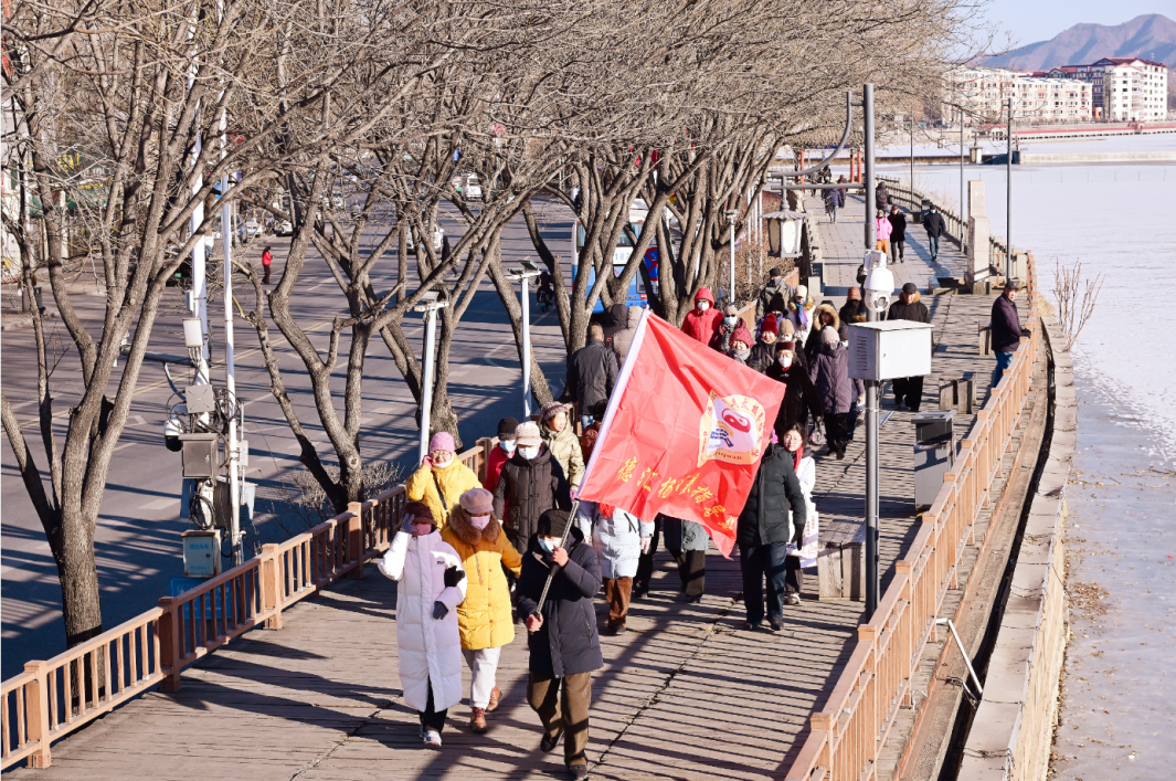 活动现场彩旗飘扬、气氛热烈。上午九时许,随着出发指令发出,参与群众精神抖擞地从畅达大剧院广场出发,沿着预设线路阔步前行。本次活动线路精心规划,全程约3.5公里,途经武烈河大堤步道、铁路观光桥,在罗汉山对面设置卡点,最终经松鹤桥返回畅达大剧院广场。行进途中,参与者们呼吸着新鲜空气,欣赏着武烈河沿岸的优美风光,时而并肩畅谈,时而相互鼓劲,展现出承德市民积极向上、活力满满的精神风貌。