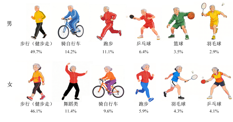 图6 60岁及以上老年人参加的主要运动项目及比例