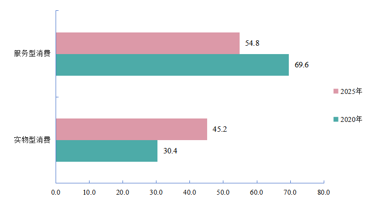 图7 2020和2025年成年人和老年人体育消费类型的占比