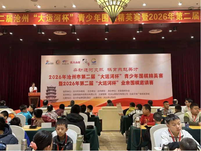 2月8日至9日,第二届沧州市“大运河杯”青少年围棋精英赛暨业余围棋邀请赛,在沧州市金狮国际酒店举行。赛事以“弈动运河文脉 棋育燕赵英才”为主题,汇聚400余名棋手,在运河之畔展开纹枰对弈。
