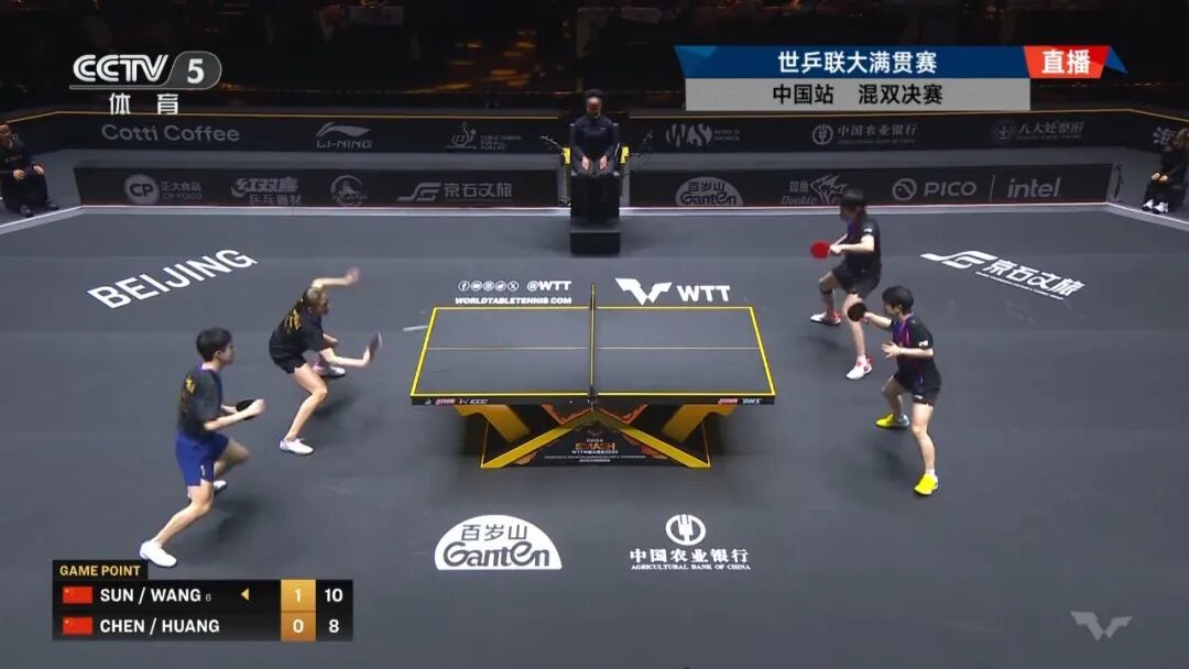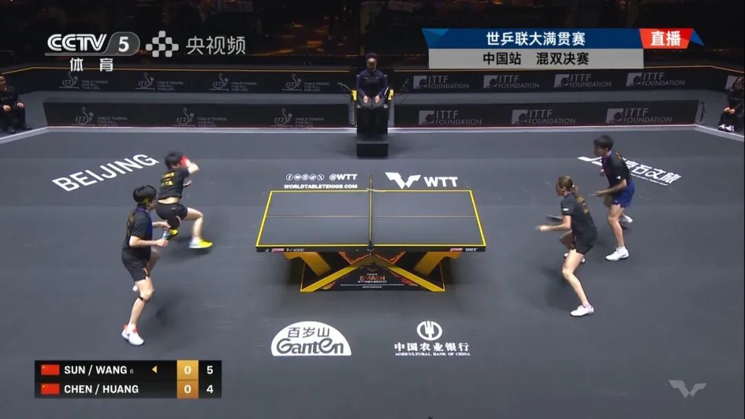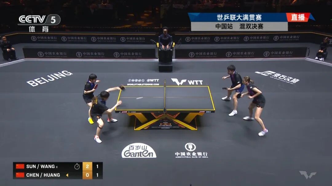 WTT中国大满贯混双决赛在两对中国组合之间展开,由奥运会冠军、世乒赛三连冠得主王楚钦/孙颖莎对阵黄友政/陈熠。