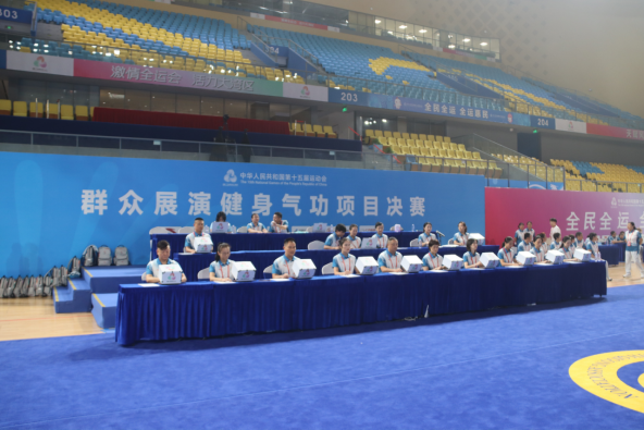 健身气功为全运会群众展演项目,通过选拔赛、分区赛、预赛,最后有17个省(含直辖市、香港、澳门)40支队伍、324名运动员闯进决赛,一决高下。