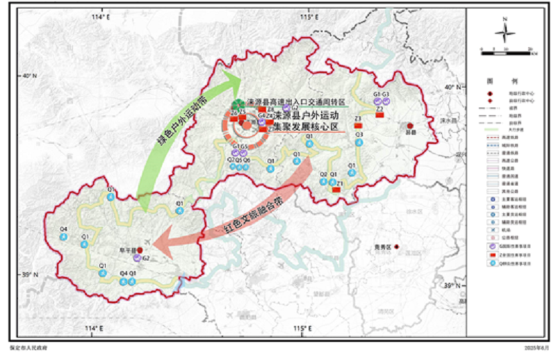 “两带”:以太行步道为主轴,深度串联涞源、阜平、易县三县优质户外运动资源和文旅资源,打造太行山绿色户外运动带和红色文旅融合带。
