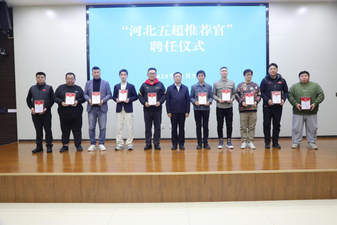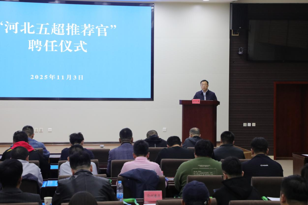 11月3日下午,“河北五超推荐官”聘任仪式在河北省体育局举行。省体育局党组成员、副局长、“河北五超”组委会常务副主任田建功出席仪式,为33名首批“河北五超推荐官”颁发聘书并致辞。