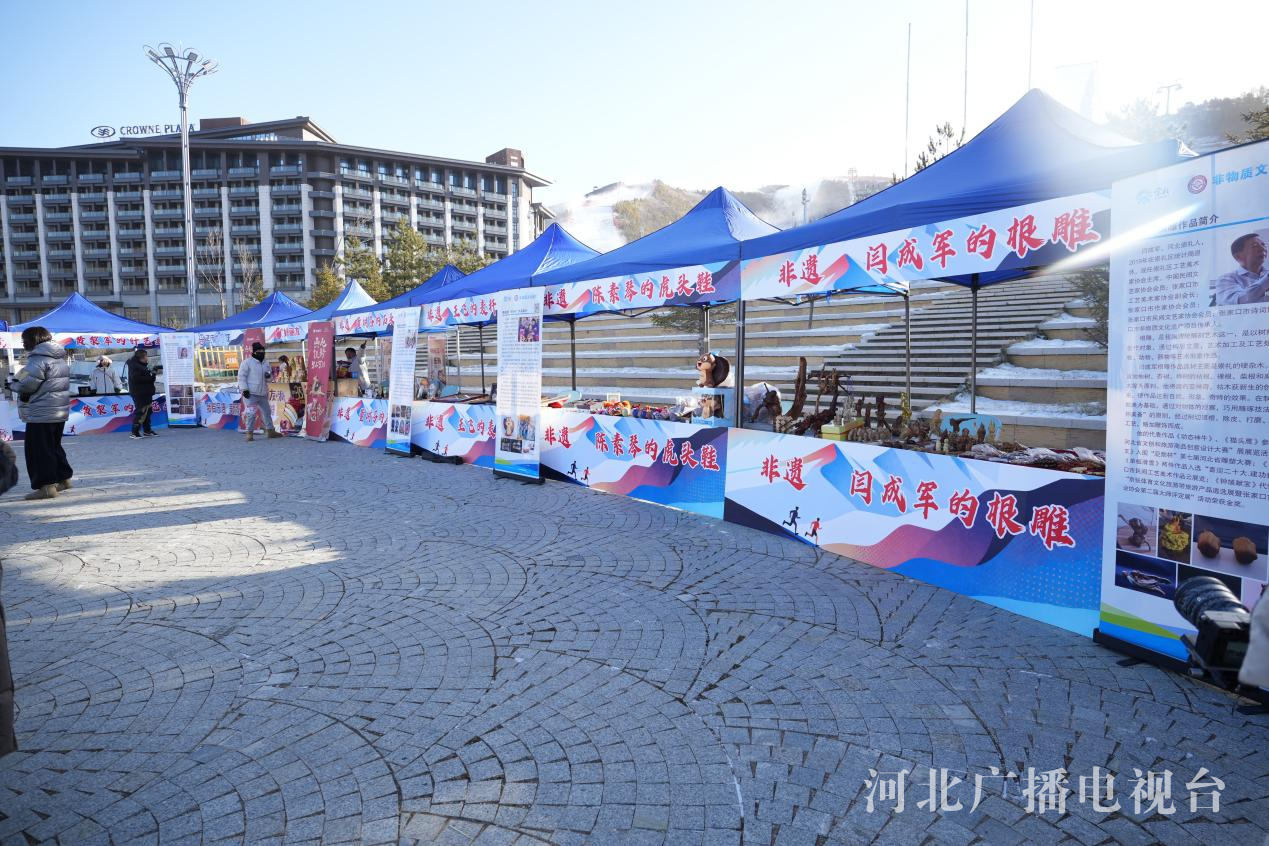赛事现场还精心打造了非遗文化盛宴,集结张家口顶尖非遗技艺:黄黎军针艺画、闫成军根雕、陈素琴虎头鞋、王飞麦秆画、陈卫红盘扣等,传统与现代在此交融,构筑出一条动人的文化长廊。选手们在挥洒激情之余,不仅能近距离欣赏非遗大师创作,感受匠心传承,还能畅游特色产品展示区,深度体验张家口的深厚文化底蕴。