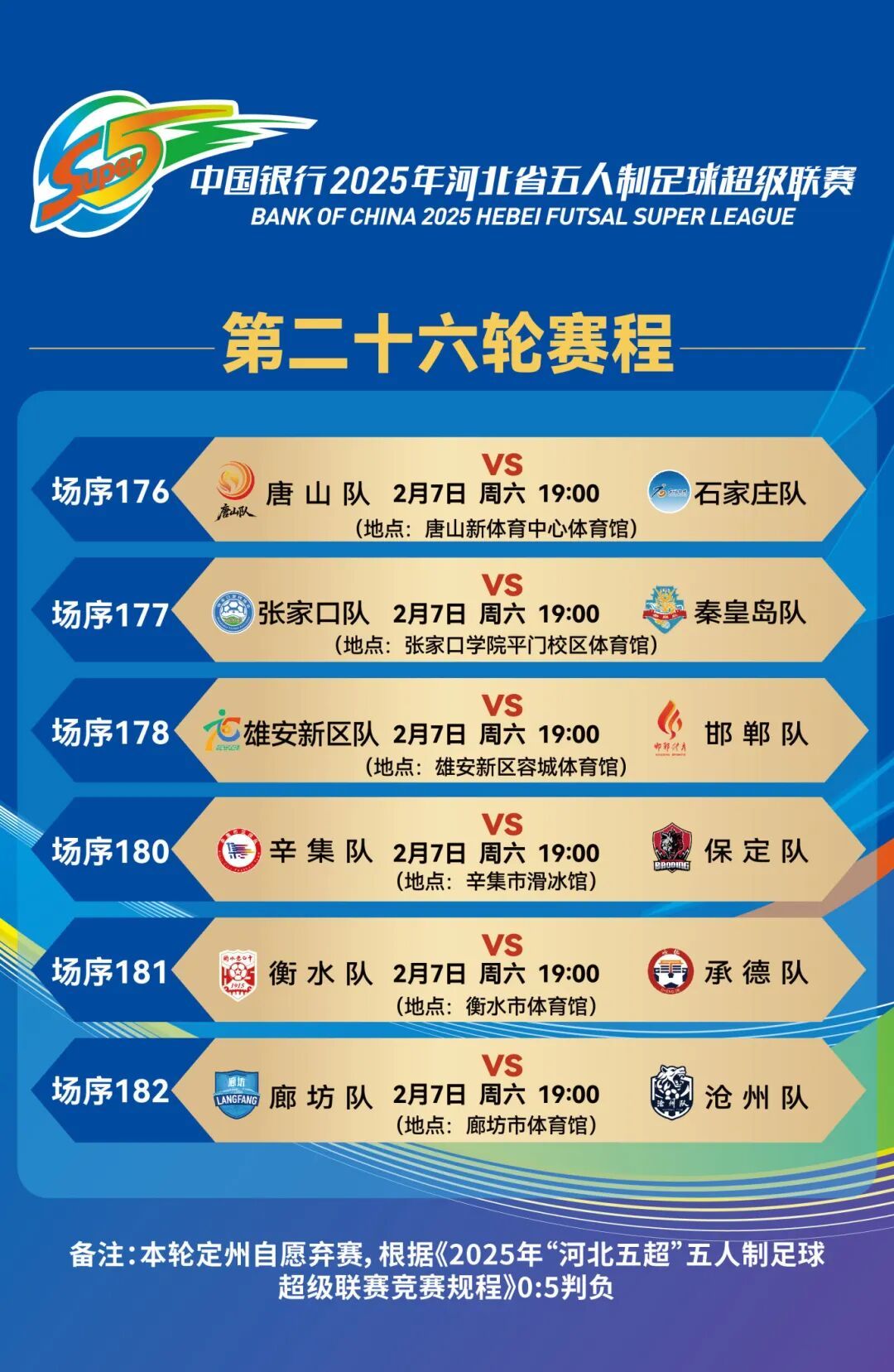 2月7日(本周六)19:00,“河北五超”第26轮将全面打响,这既是常规赛收官之战,更是自盛夏启赛、历经半年鏖战的八强晋级决胜战。