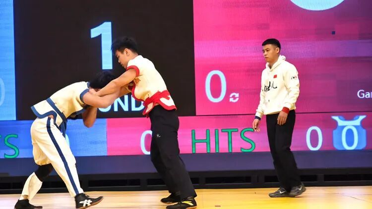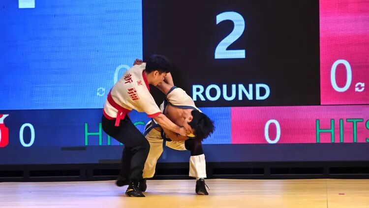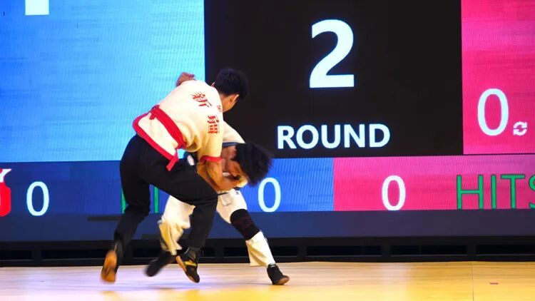 两人在场地内周旋,勾、别、缠、踢,招招精彩。比赛进入最后10秒,王吉先以一记漂亮的“揣”将对手凌空背起,干净利落地摔落在地。台下掌声、叫好声瞬间爆发。