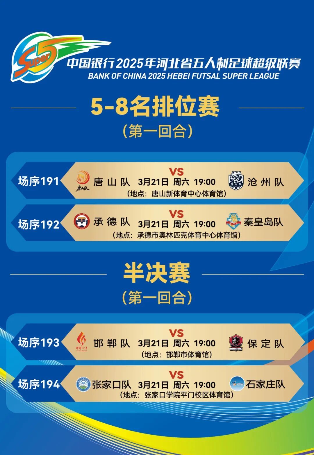 3月21日(周六),“河北五超”季后赛半决赛第一回合与5-8名排位赛第一回合将同步打响!四强队伍向总决赛发起冲击,剩余四支劲旅为荣誉而战。精彩比赛,一触即发→