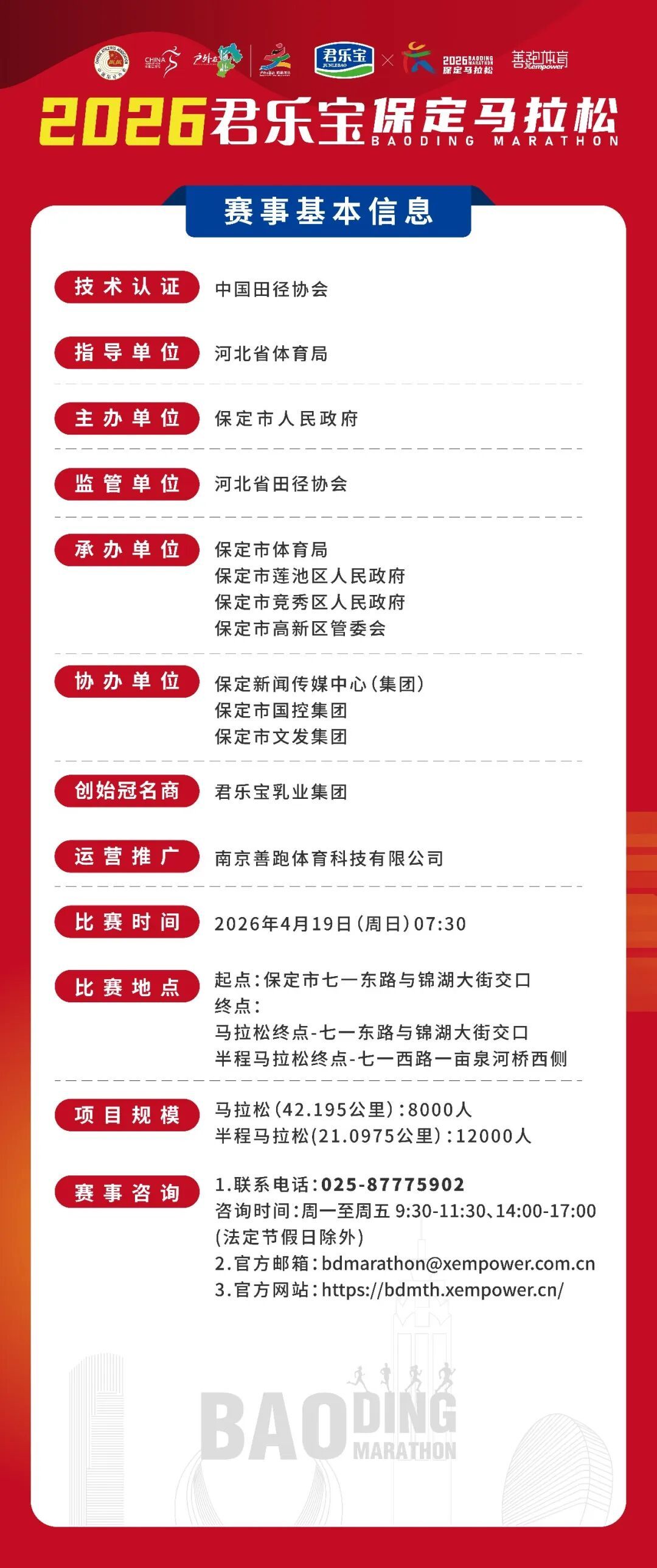 2026君乐宝保定马拉松将于4月19日开跑。为了赛事安全、有序、顺利举办,保障所有参赛者的赛事体验与人身安全,现将竞赛规程补充通知公布如下: