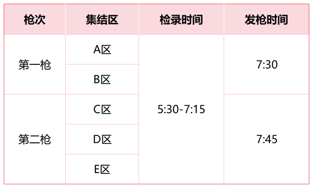 (三)组委会在每个分区前都设置了计时毯,参赛者先通过所在分区的检录地毯,再通过起点计时毯的成绩方为有效。