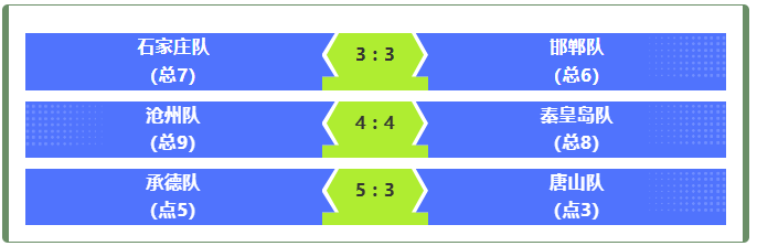 在5-6名排位赛第二回合中,沧州队与秦皇岛队战成4:4平,从而以两回合总比分9:8战胜秦皇岛队,收获第五名。