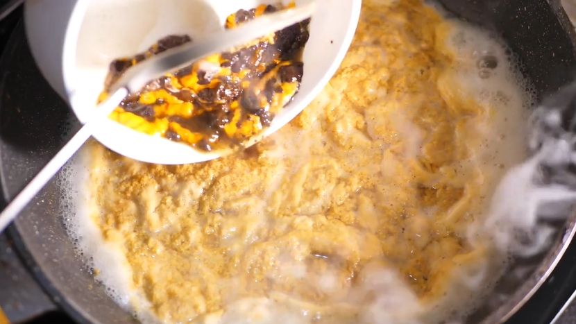 放入特制的小铁锅中搅拌、慢焖