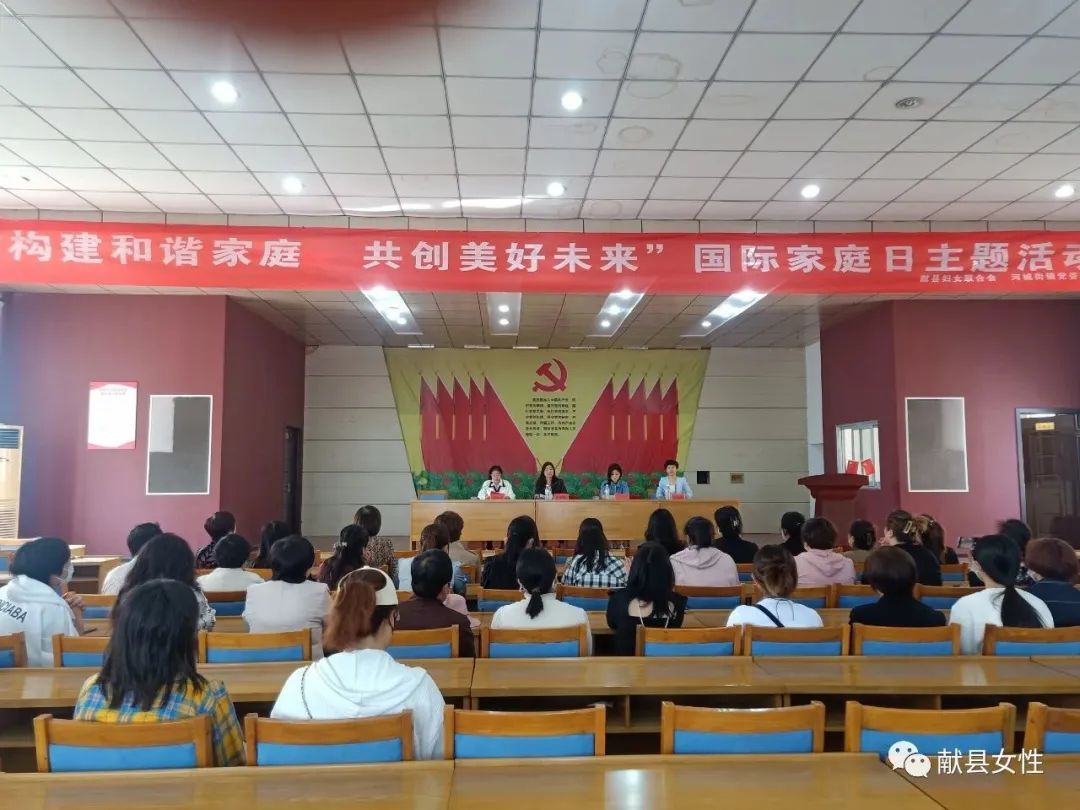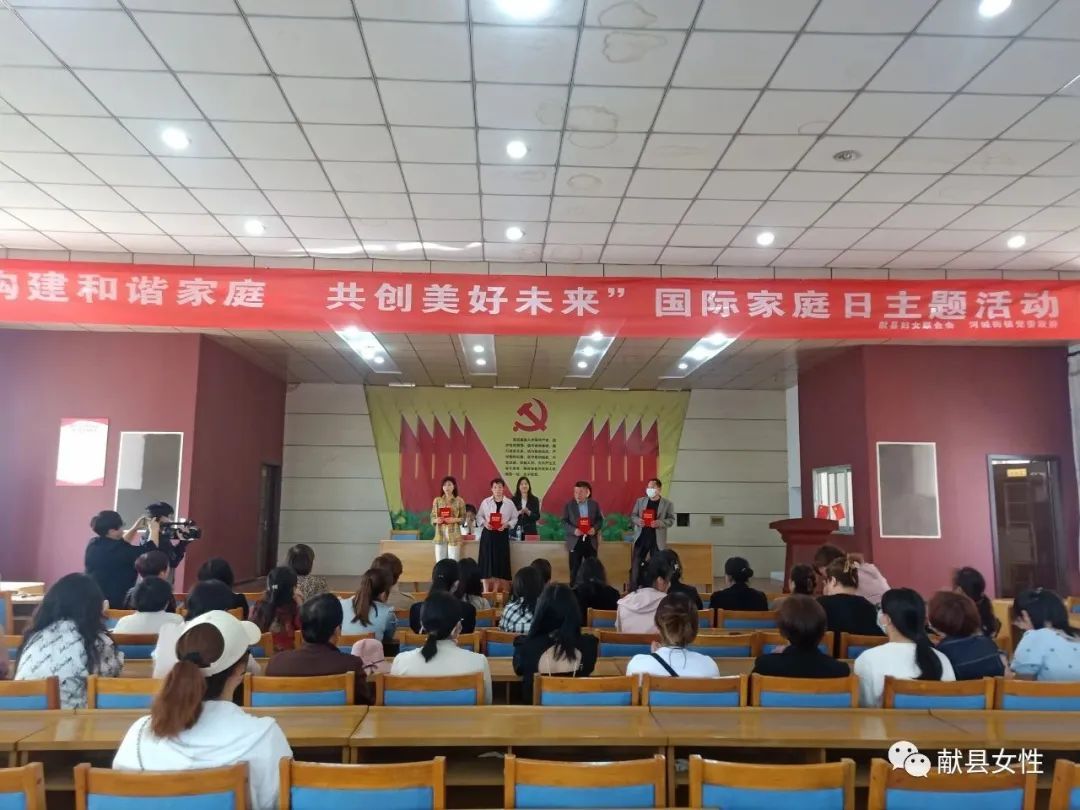 在国际家庭日来临之际,5月12日,献县妇联在河城街镇小屯村妇女之家举办“构建和谐家庭 共创美好未来”国际家庭日主题活动,河城街镇“星级文明户”、“最美家庭”先进代表、河城街镇52个村的妇联主席共计70余人参加活动。