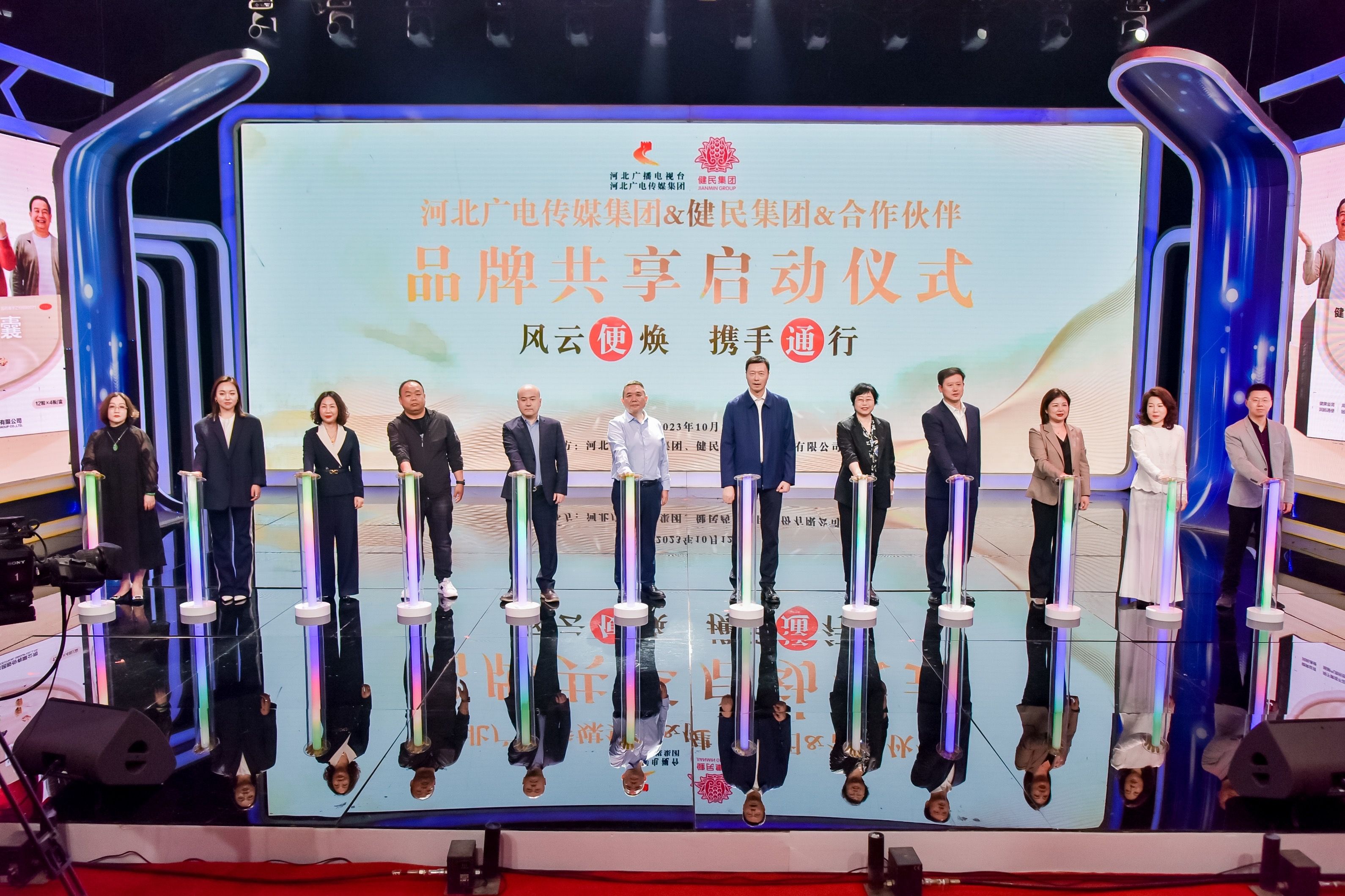 2023年10月12日下午,在河北广播电视台400演播厅举行了河北广电传媒集团和健民集团战略合作签约仪式。健民药业集团股份有限公司北湖销售公司总经理杨军,品牌总监李楠;河北广播电视台(集团)党委副书记、总经理肖钧,党委委员、副总经理冀国锋,副总经理刘欣、罗大成等出席活动。河北省市场监督管理局、河北省品牌传播研究会、河北省医药行业协会相关负责同志受邀参加。