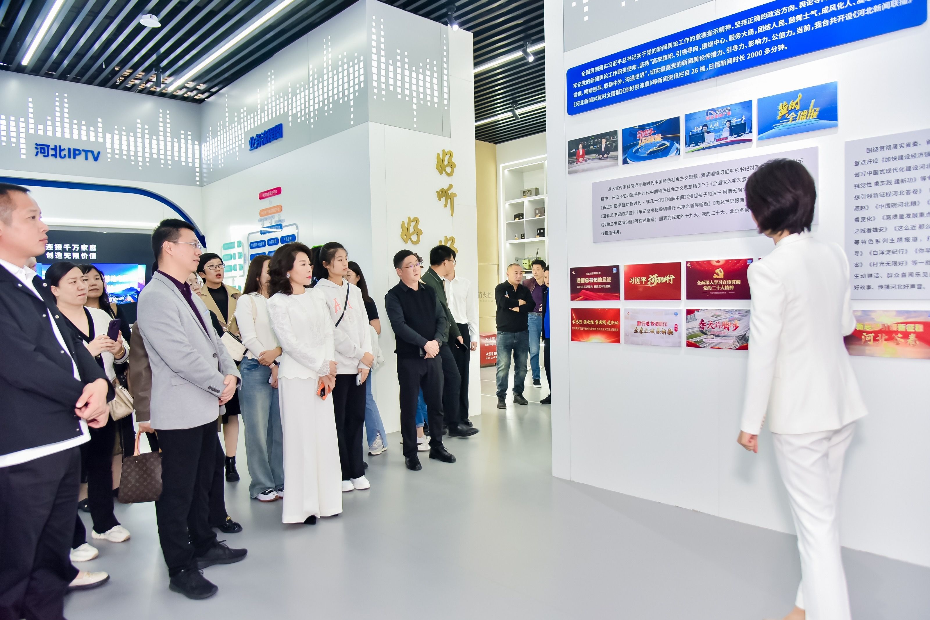 战略签约仪式开始前,河北台(集团)副总经理刘欣还陪同健民集团品牌总监李楠及健民重要客户代表一行参观了河北台展览体验中心、全媒体指挥调度中心。