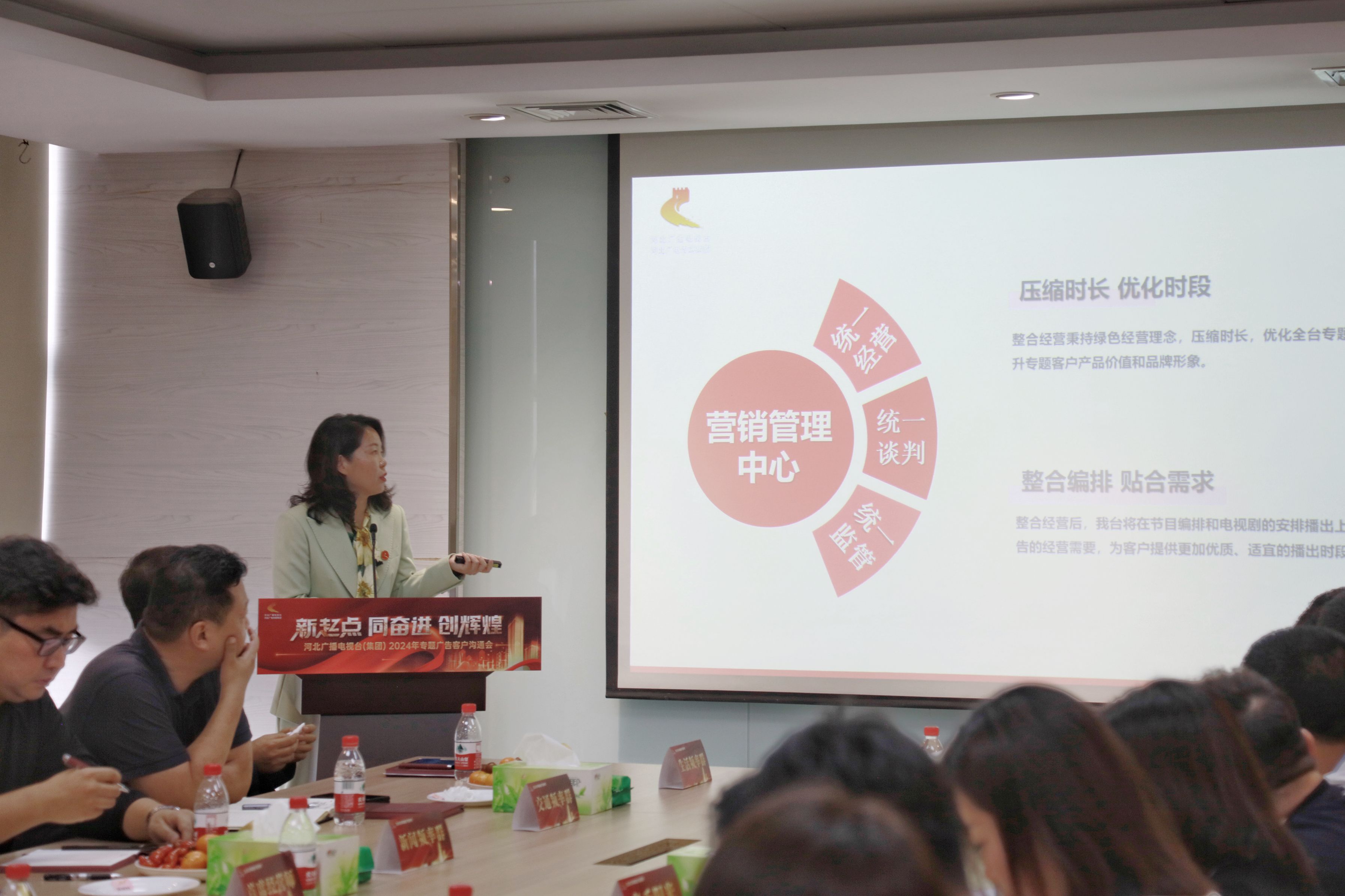 营销管理中心负责人向客户介绍了做好专题广告整合经营的思路和举措,发布了2024年台(集团)专题广告政策和资源信息。