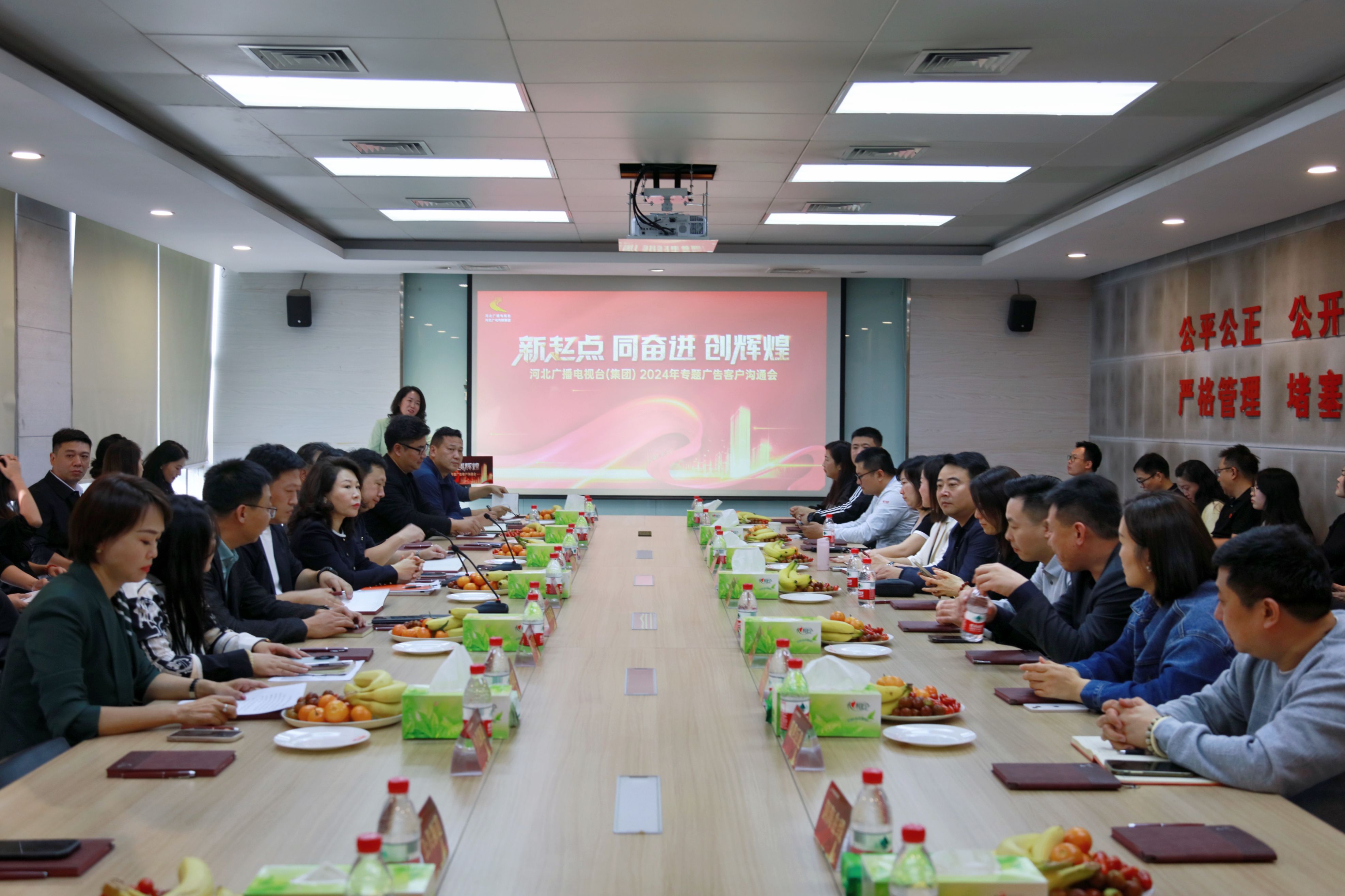 为更好推进河北广播电视台(集团)专题广告整合经营工作,吸纳更多优质客户参与合作,“河北广播电视台(集团)2024年专题广告客户沟通会”于11月2日下午在台(集团)营销管理中心举行。40余位来自全国的客户代表到场参与,台(集团)党委副书记、总经理肖钧,副总经理刘欣,营销管理中心及频率频道相关负责人出席会议,并与客户代表进行交流。