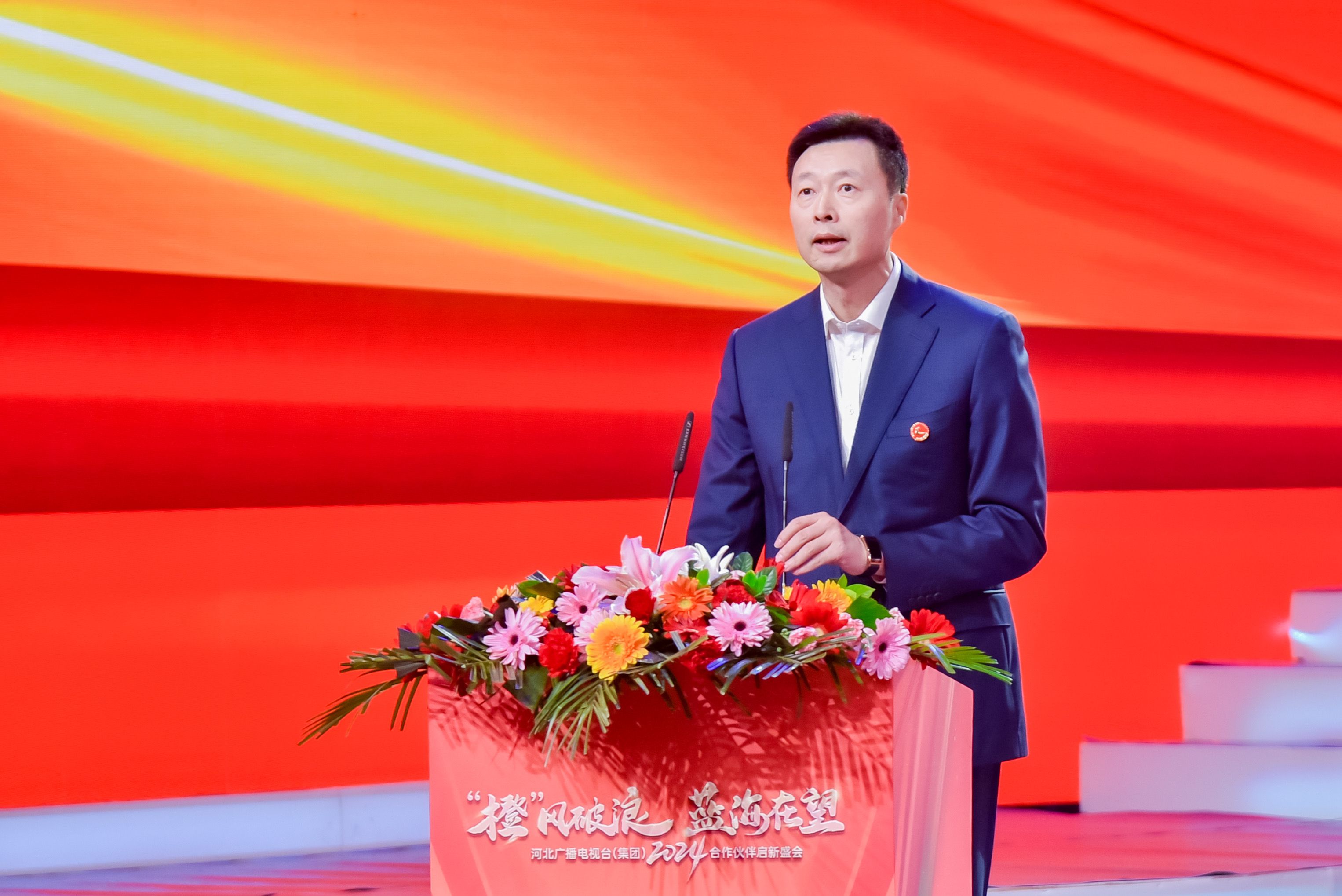 台(集团) 党委副书记、总经理肖钧代表河北广播电视台(集团)发表了热情洋溢的致辞,他表示:在全省上下深入学习贯彻习近平总书记视察河北重要讲话精神、认真落实省委十届五次全会部署之际,河北广播电视台(集团)以一抹闪亮的“橙色”点亮冬之留白,与合作伙伴携手擘画崭新的事业蓝图。2023年,河北广播电视台(集团)谋势而动、乘势而上,加快推进转型发展,奋力建设新型主流媒体。2024年,河北广播电视台(集团)将更好发挥主流媒体责任,与合作伙伴一起“橙”风破浪,蓝海扬帆,奋力谱写媒企融合发展、合作共赢的新篇章!