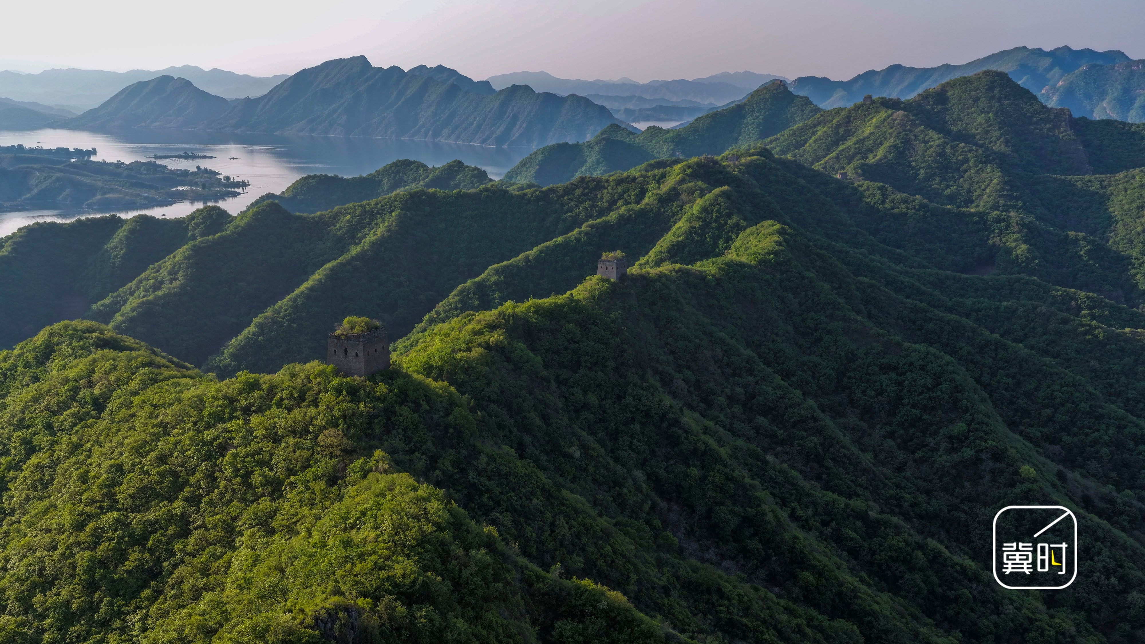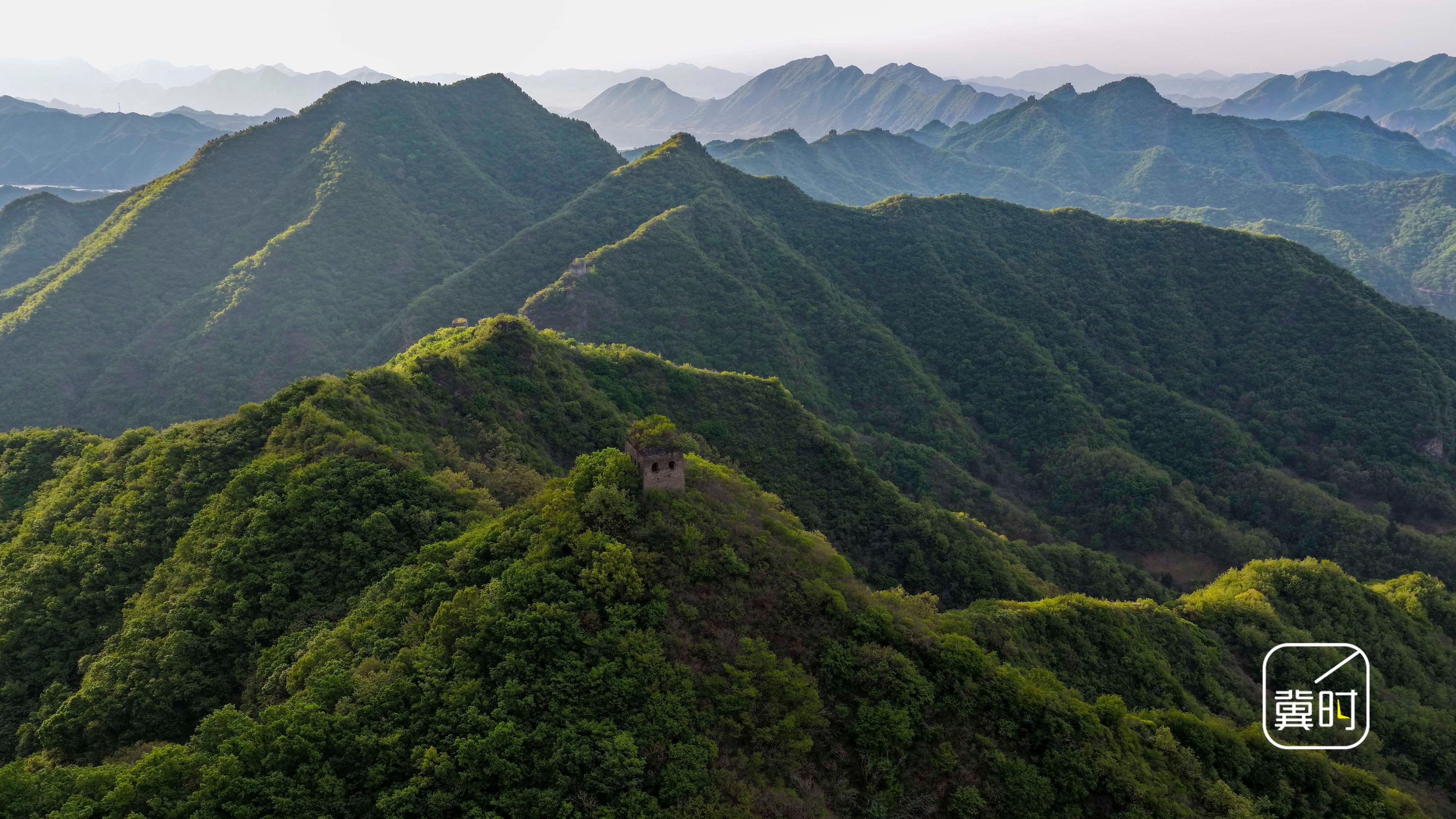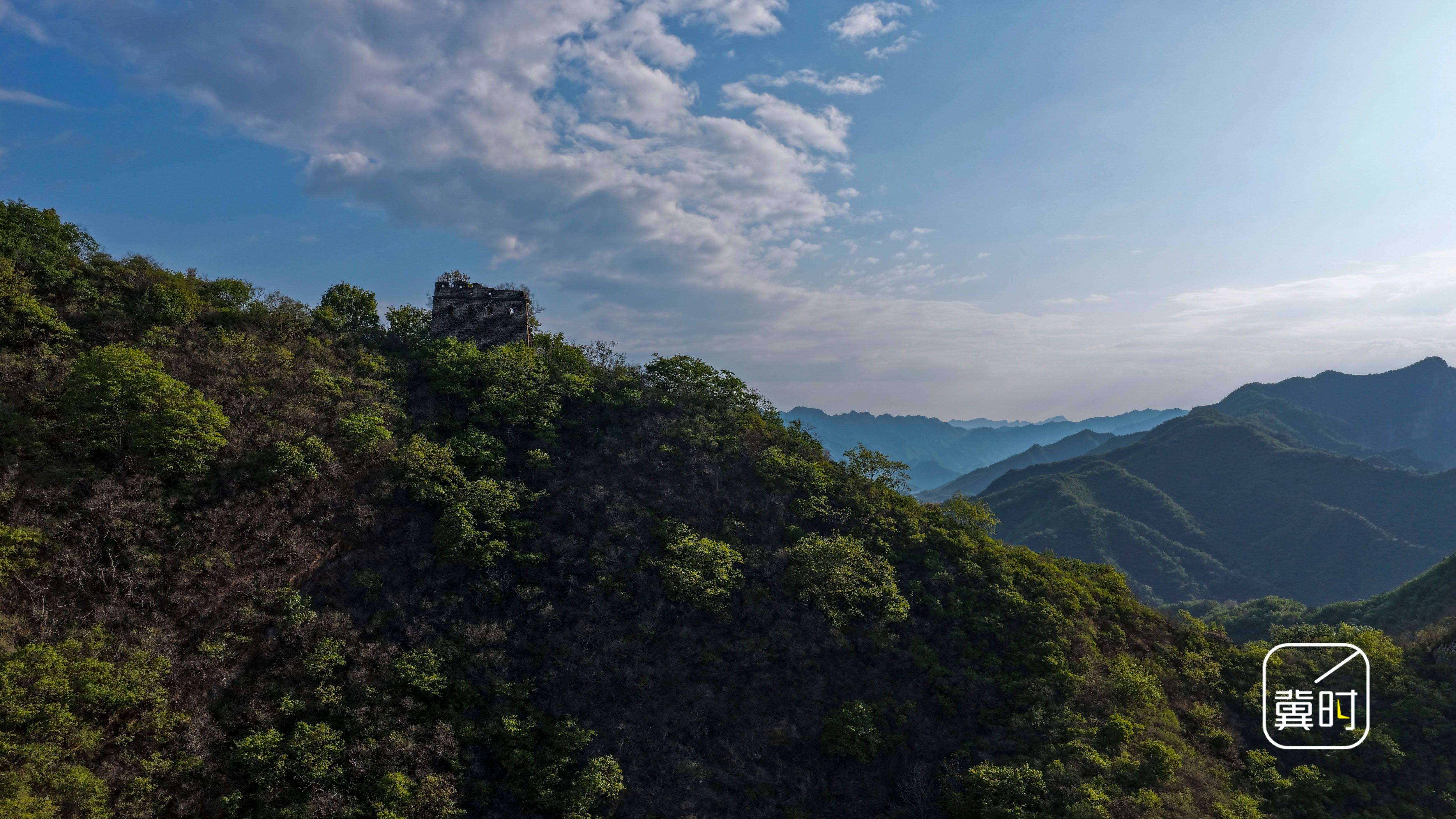 冀时新闻报道(通讯员 刘满仓) 今天(4月27日)清晨,位于唐山市迁西县与承德市宽城满族自治县交界处的潘家口长城附近群山披绿,满目青翠,晨光中的古长城宏伟壮观,美如画卷。