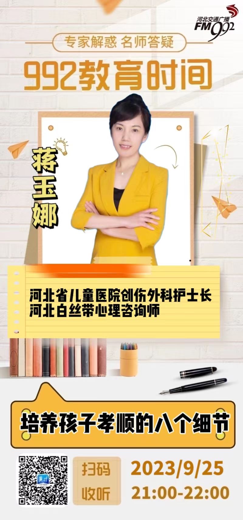 蒋老师:是的,我们单位包括现在很多社会现象,前不久咱们演播室的盘手串话题,包括我们医院心理行为科主任王霞教授举了很多来就诊的孩子的症状,学习困哪、厌学休学在家无所事事、焦虑、抑郁、非自杀性自伤行为甚至是自杀轻生现象,王教授在给这些孩子们做各项评估,进行心理治疗及药物治疗。这些孩子们的情绪或者心理问题状态得到好转,那么以后孩子对待问题如果区思考如何用正确的积极的思维去解决,非常至关重要。所以王教授提到家长一定给孩子们做好心理健康建设,让孩子们遇到困难,别人给自己提出的错误,批评指责,为人处世的原则等等去充实孩子单纯的心灵。从而培养孩子正确的三观,才会与社会主义价值观相契合。这也是家校医教育的根本任务。
