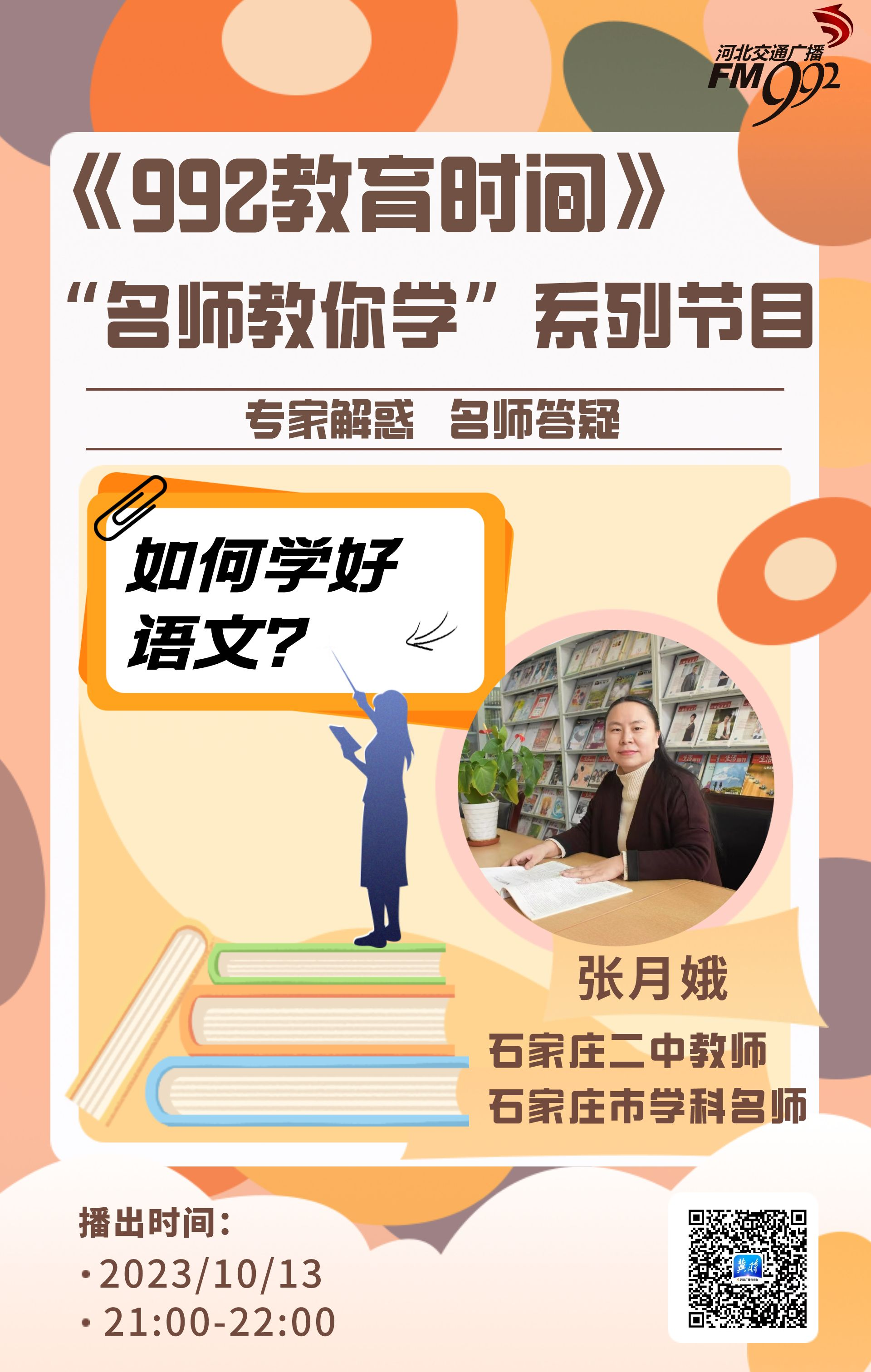 大家好,我是石家庄二中的语文老师张月娥,很高兴来到《992教育时间》与大家一起探讨交流语文学习。