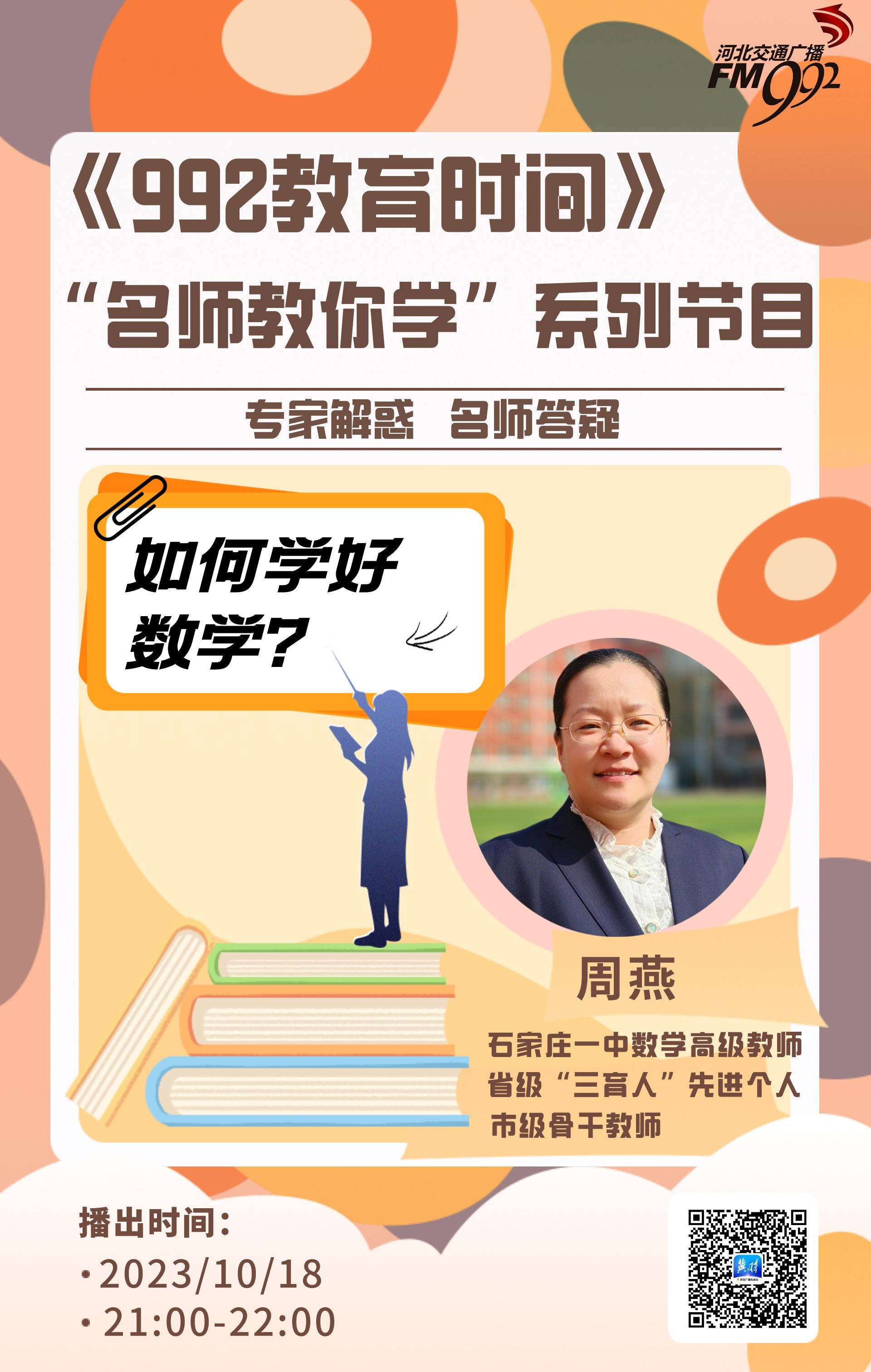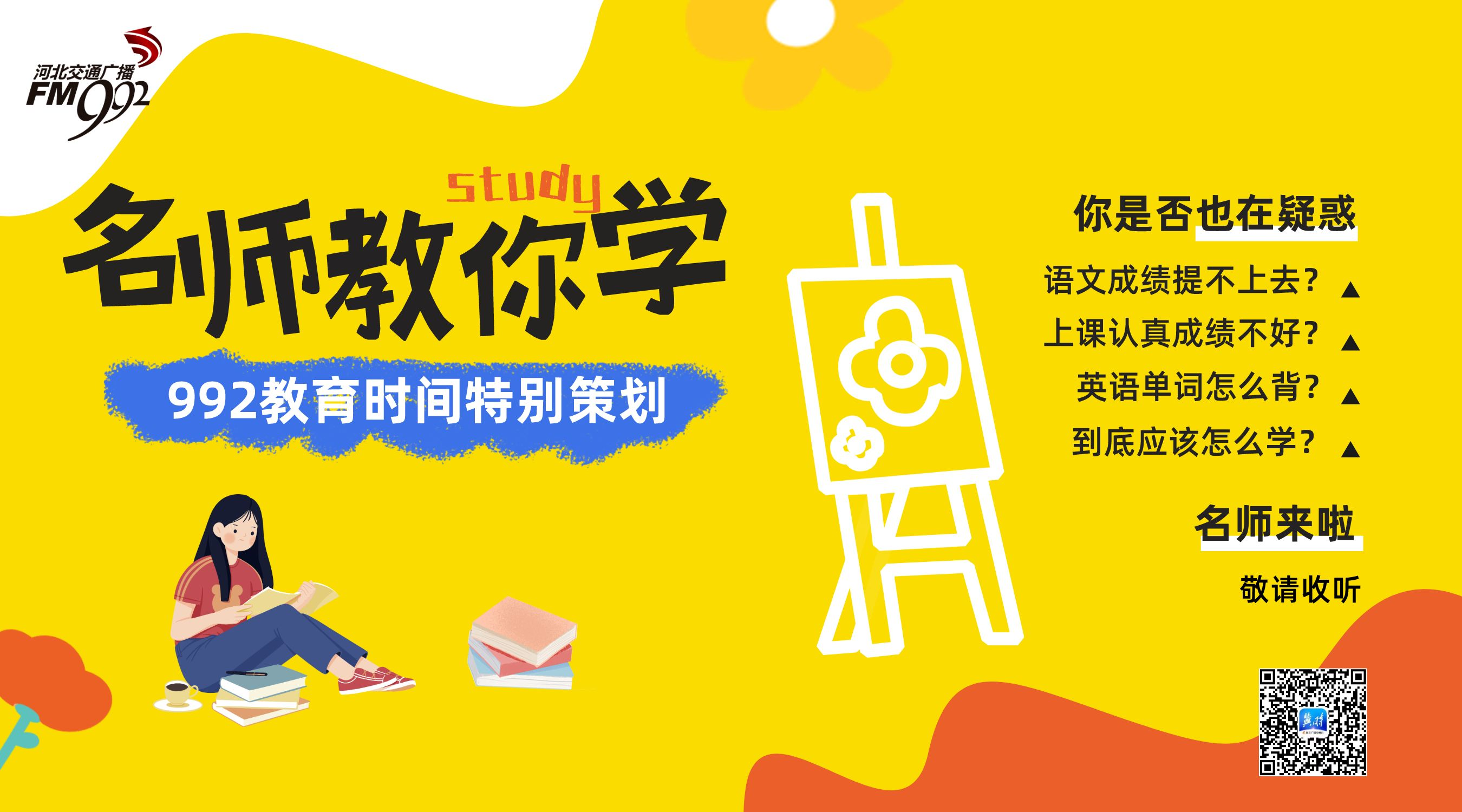 金秋时节,同学们逐渐适应了新学期。但是对于各个学科的学习往往存在很多困惑,我读了很多书为什么语文成绩提不上去?英语单词背了很多一到考试分数却不太理想?明明上课认真听讲,但是一做题却不会?《992教育时间》栏目特别推出了“名师教你学”特别节目。邀请河北省内知名高中各学科带头人做客节目,就不同学科的学习技巧、方法、重点难点等方面详细为大家答疑解惑。帮助广大家长和同学们更好地适应学科学习。