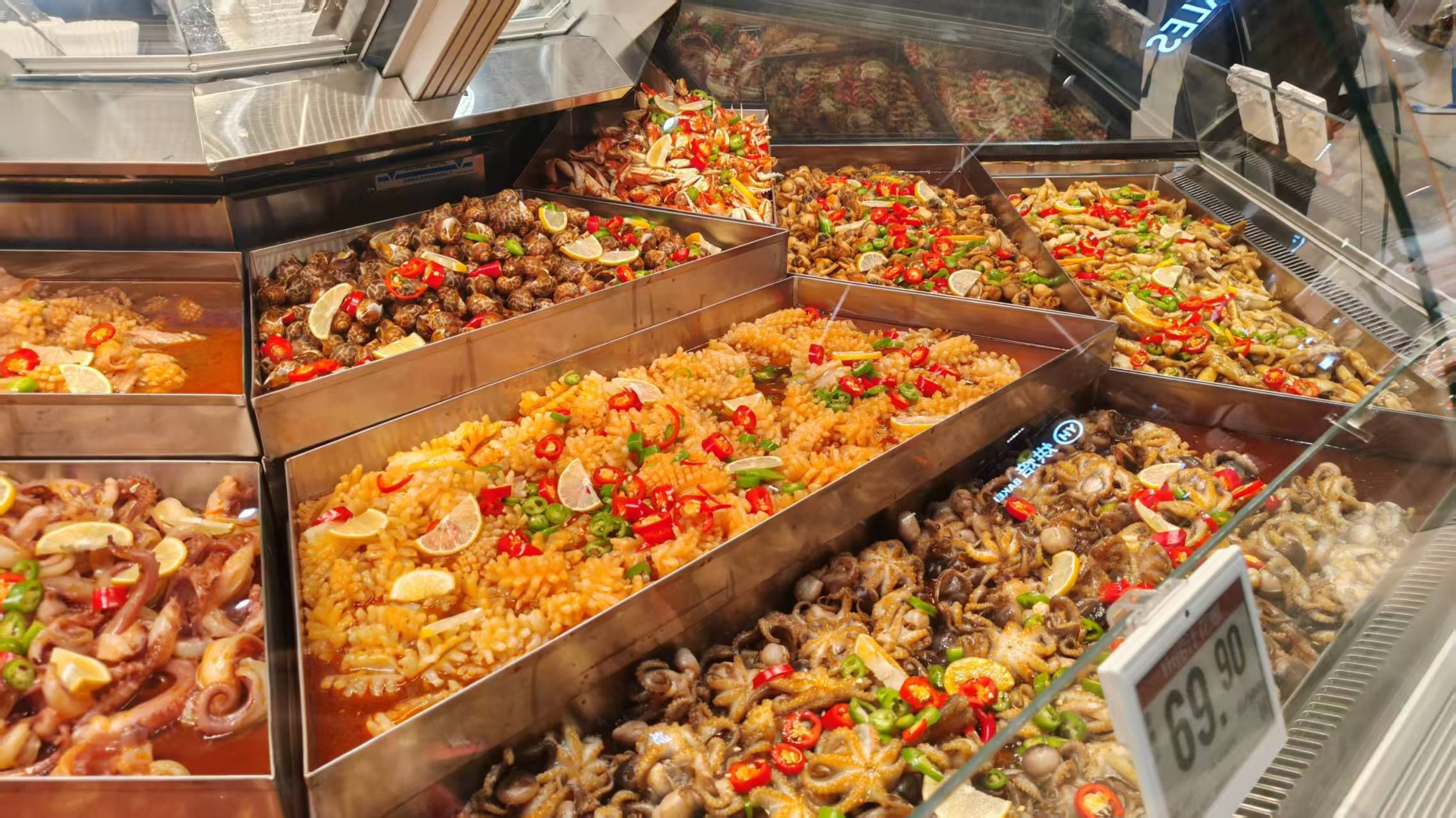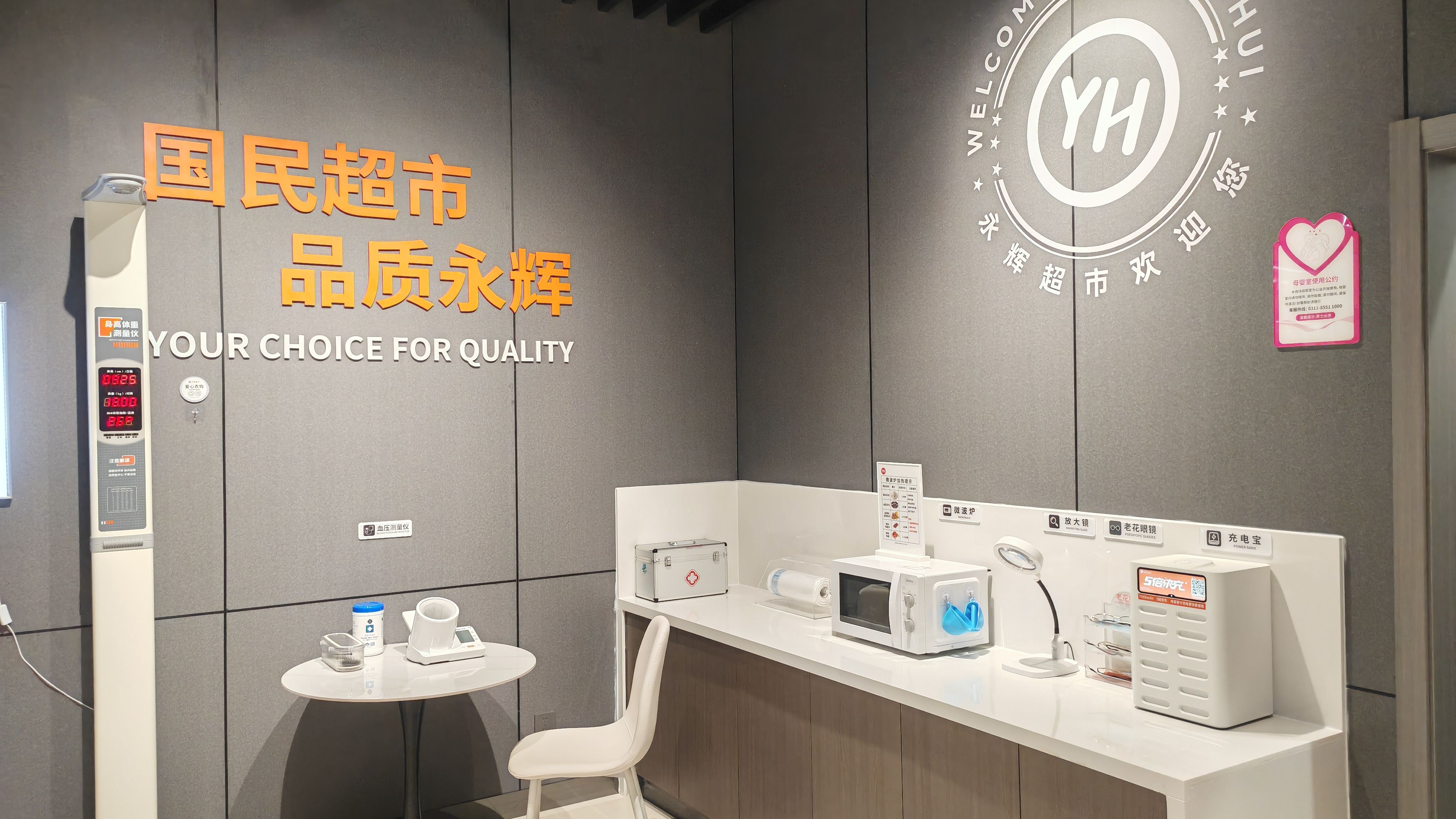 在便民服务方面,门店增加了多项贴心设施:顾客休息区配备了身高测量仪、血压测量仪、洗手池、直饮水、微波炉等便民设备;新增的宠物安置区、母婴室和多功能卫生间解决了带娃、带宠物顾客的购物需求;肉禽柜台可根据顾客需求提供切丝、切片、绞肉、剥皮、剔骨等服务;海鲜区为海鲜提供剖鱼清理、切片切段、清洗、打氧等专业服务。