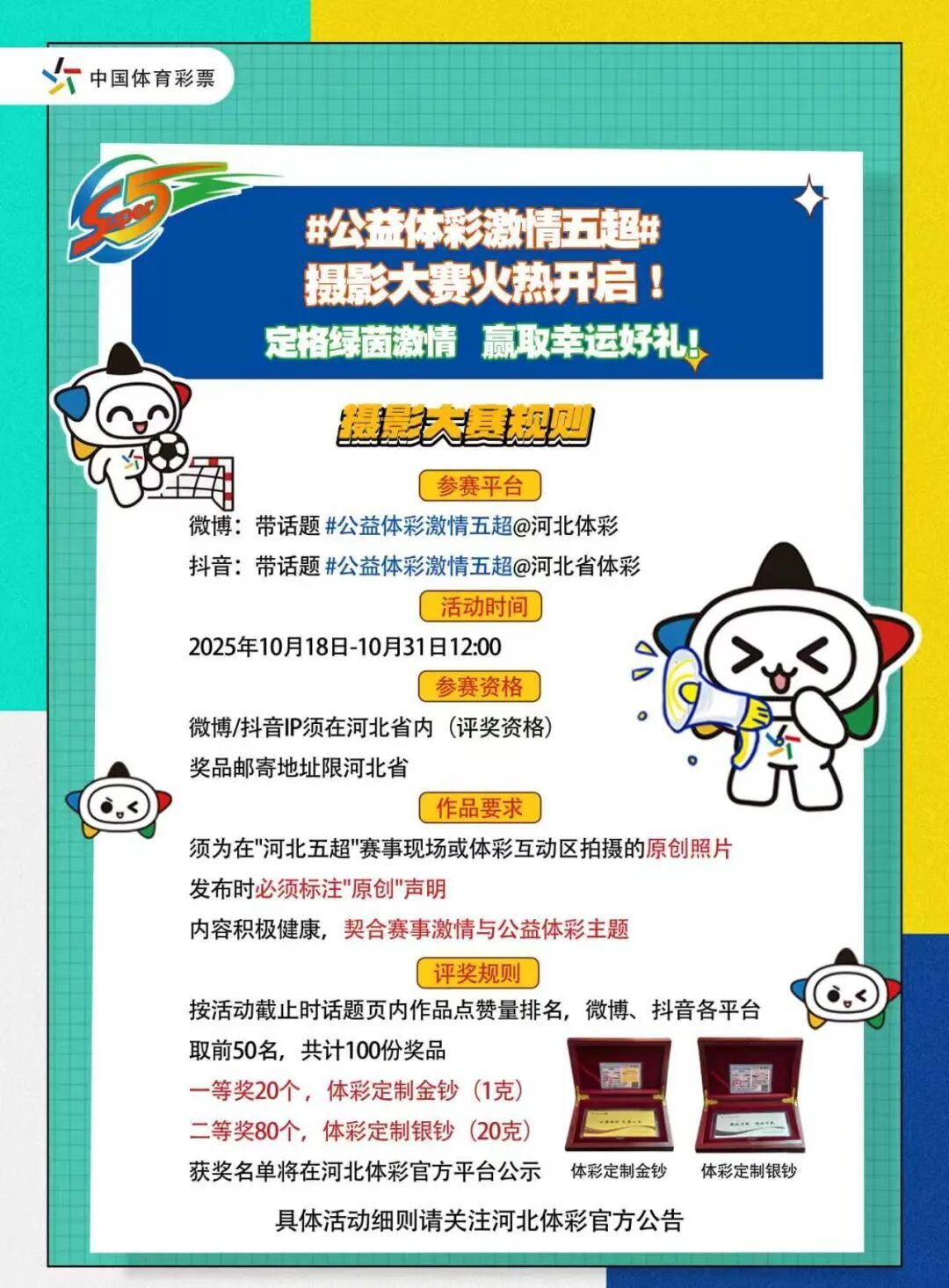 “公益体彩 激情五超”河北体彩摄影大赛也将同步火热开启!邀您定格绿茵激情,赢取幸运好礼!