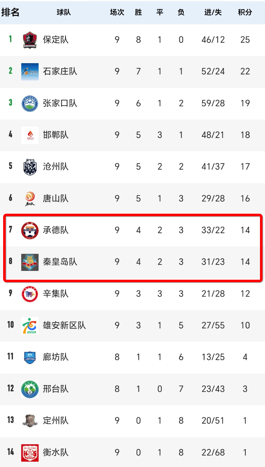 积分卡位战:前9轮战罢,承德队与秦皇岛队犹如两驾并驾齐驱的战车,均取得了4胜2平3负的战绩,同积14分。此战结果将直接影响排名格局,双方势必全力以赴。