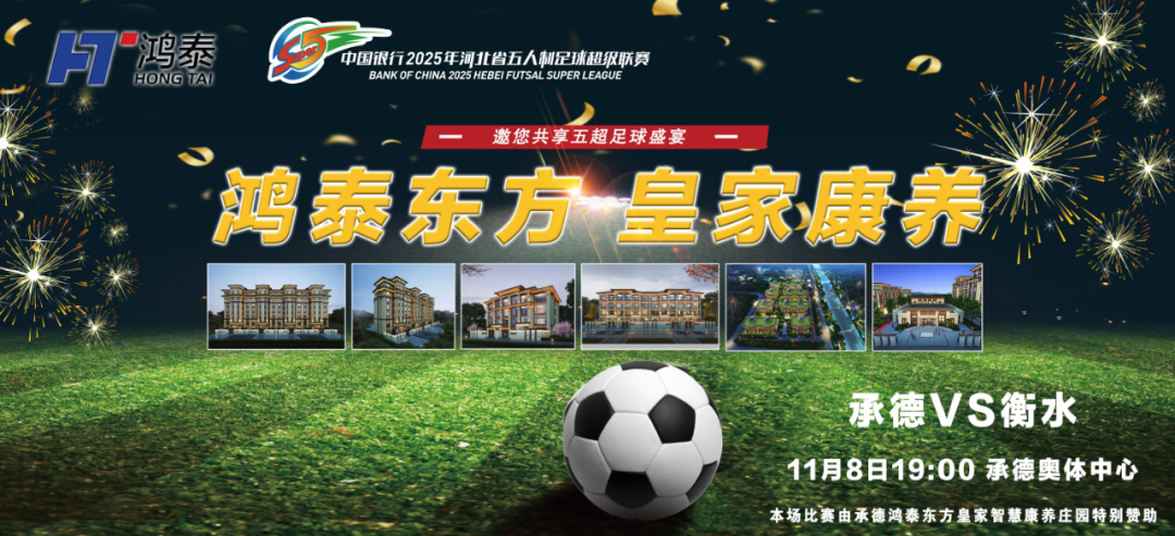 本场比赛以“以足球之名,致康养之境”为主题,由承德鸿泰东方皇家智慧康养庄园特别赞助,联赛征程过半,每一分都至关重要,现在积分榜中游挤得像“一锅粥”,胜负突围至关重要,这场球,必看!