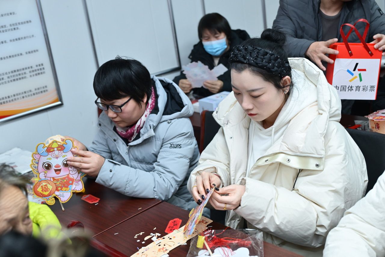 趣味互动环节堪称“邻里同乐会”,现场笑声此起彼伏。“你比划我猜”运动项目挑战赛中,获胜者捧走体彩定制纪念品;国风灯笼DIY环节,一个个色彩鲜亮的灯笼在指尖成型;体彩知识有奖问答环节,居民们踊跃抢答,在轻松互动中再次加深了对体彩公益属性的认知。