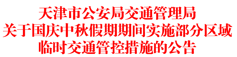 2025年国庆中秋假期期间,为加强解放桥、金街、五大道及海河沿线区域道路交通管理工作,保障出行高峰时段道路交通安全有序畅通,依据《中华人民共和国道路交通安全法》等法律法规,决定对我市部分区域实施临时交通管控措施。现公告如下: