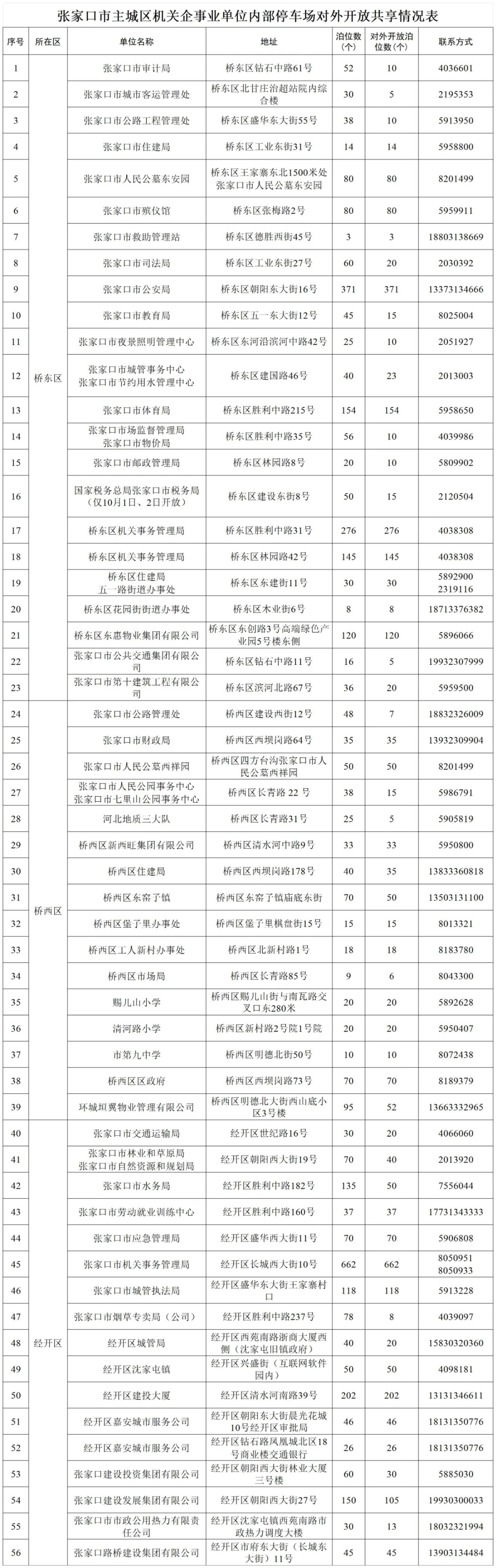 为保障市民出行便利,充分发挥机关企事业单位公共资源的社会效益,现就2025年国庆节(中秋节)期间张家口市机关企事业单位停车场免费开放工作通告如下: