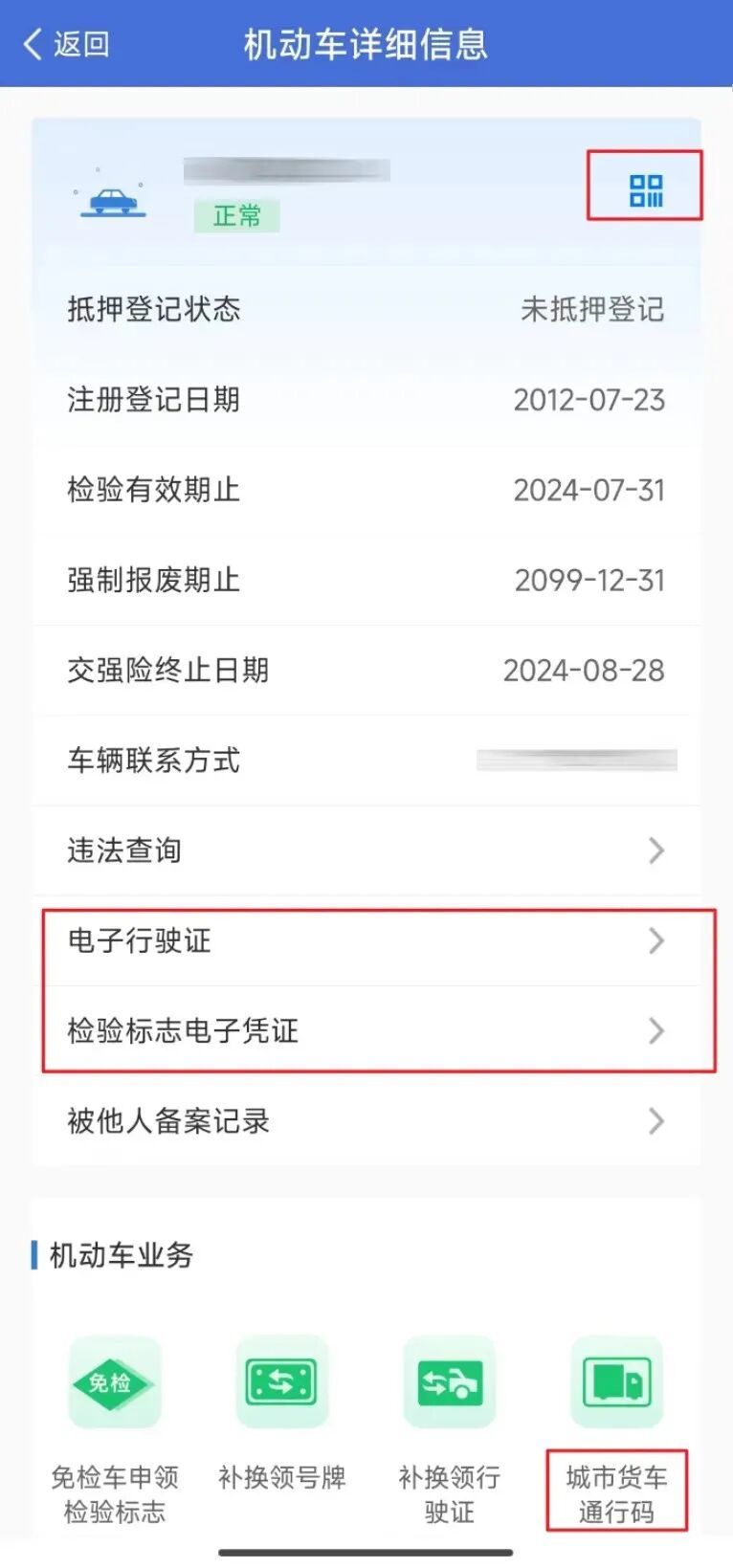 在需要出示车辆相关证件时,单位用户通过“交管 12123”APP 单位用户版,可以快速查询并出示本单位名下车辆的电子行驶证、检验标志电子凭证、机动车二维码、城市货车通行码等。