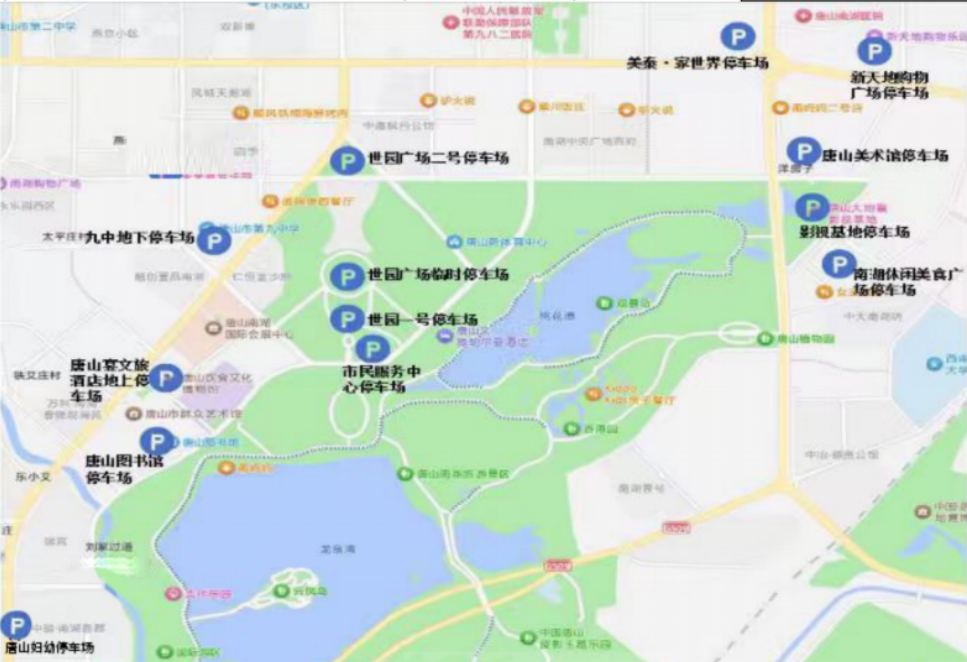 演唱会当天,场馆周边人流量、车流量较大,停车位紧张。自驾前往演出场地的歌迷朋友,可将车辆停放在唐山宴地面停车场(强烈推荐)、妇幼医院北侧地面停车场(强烈推荐)、唐山图书馆停车场、唐山美术馆停车场、南湖休闲美食广场停车场、影视基地停车场、新天地购物广场停车场、美泰·家世界等周边停车区域。