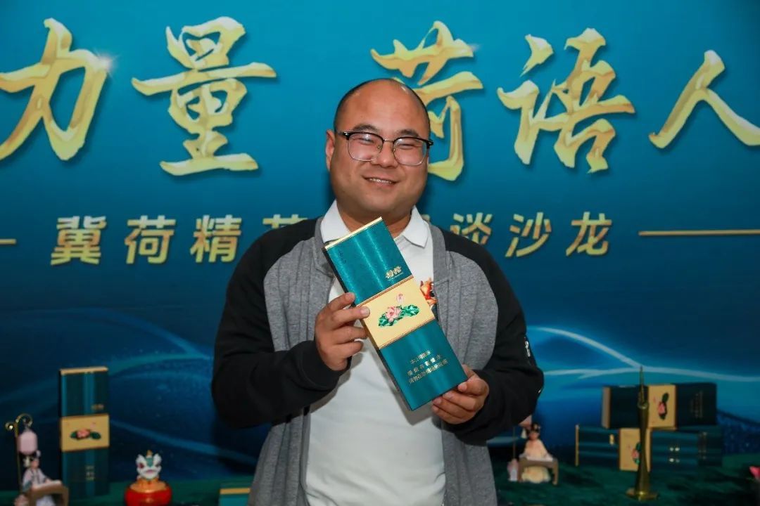 在12月8日举办的“冀荷精英荟恳谈沙龙”广州站活动现场,河北中烟华南销区市场经理史伟在荷花品牌展台前向与会企业家介绍荷花品牌文化及新品小雅。