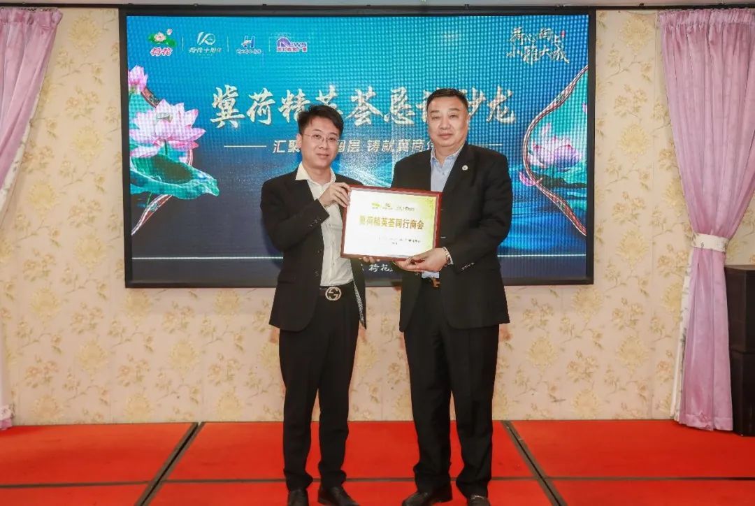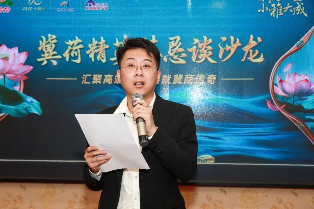 在听完主持人的讲解后,广东省河北商会常务副会长、常务副秘书长张力登上舞台,与主持人互动交流,畅谈对荷花产品及“冀荷精英荟”的建议。