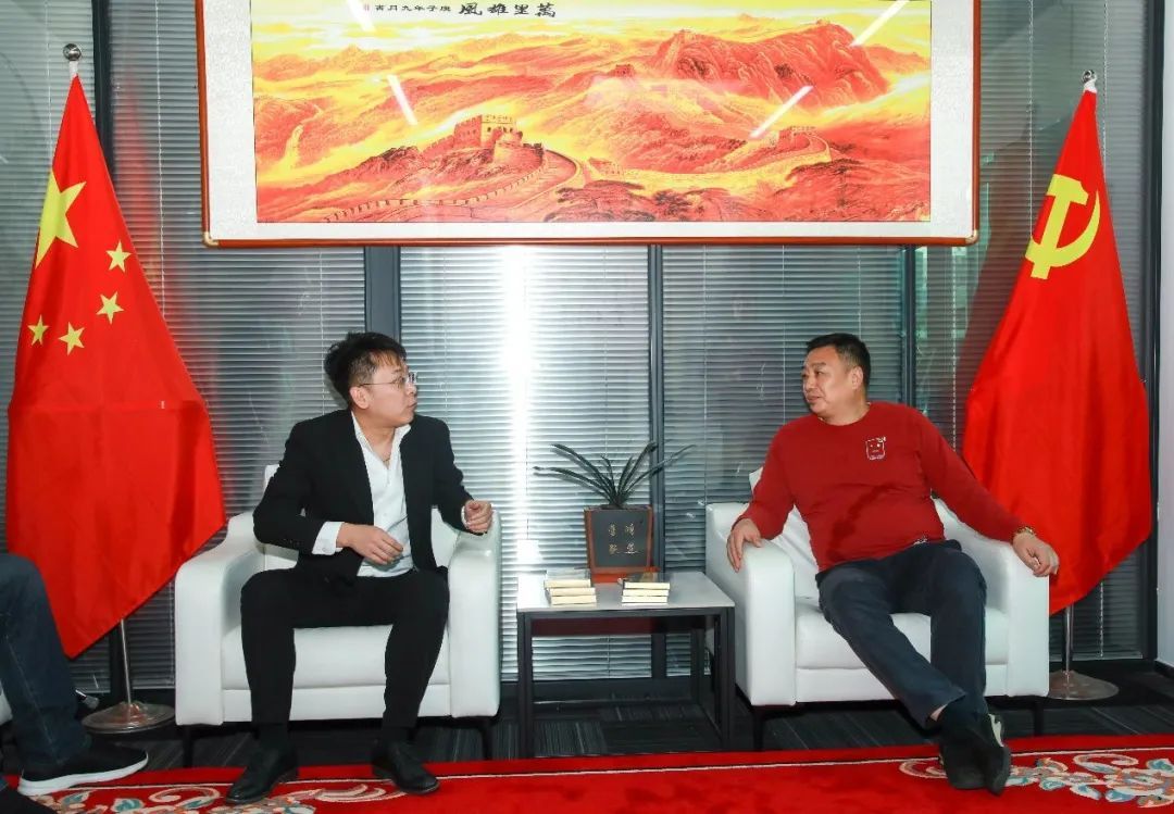 图为河北中烟华南销区市场经理史伟(左)与广东省河北商会党支部书记、秘书长孙志强(右)在商会贵宾厅座谈。