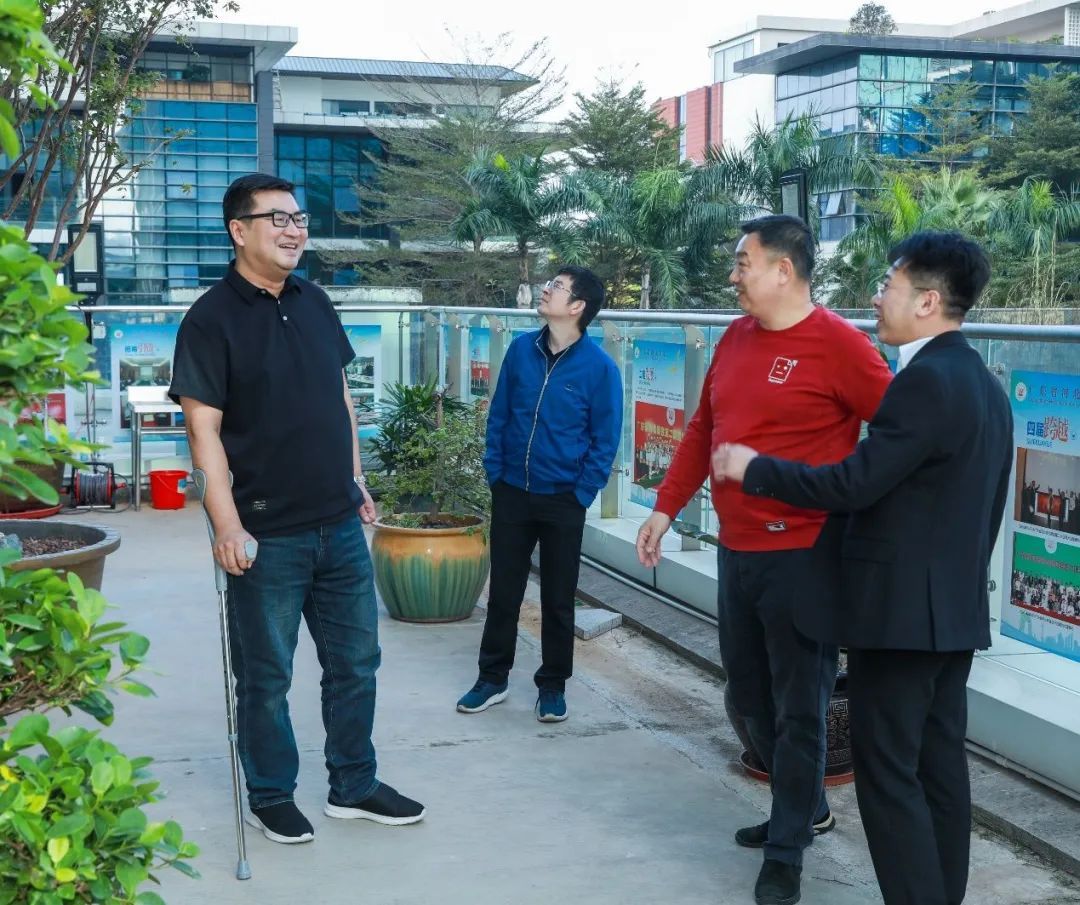 孙志强秘书长带领项目组参观商会新址。上图为史伟经理与孙志强秘书长就今后荷花品牌在广东省河北商会常设品牌展示区等话题进行交流。