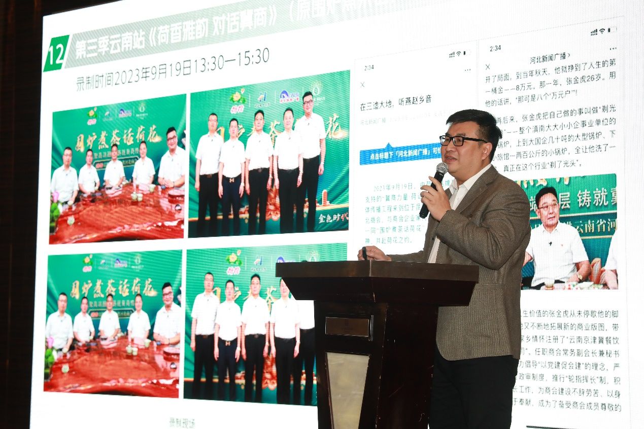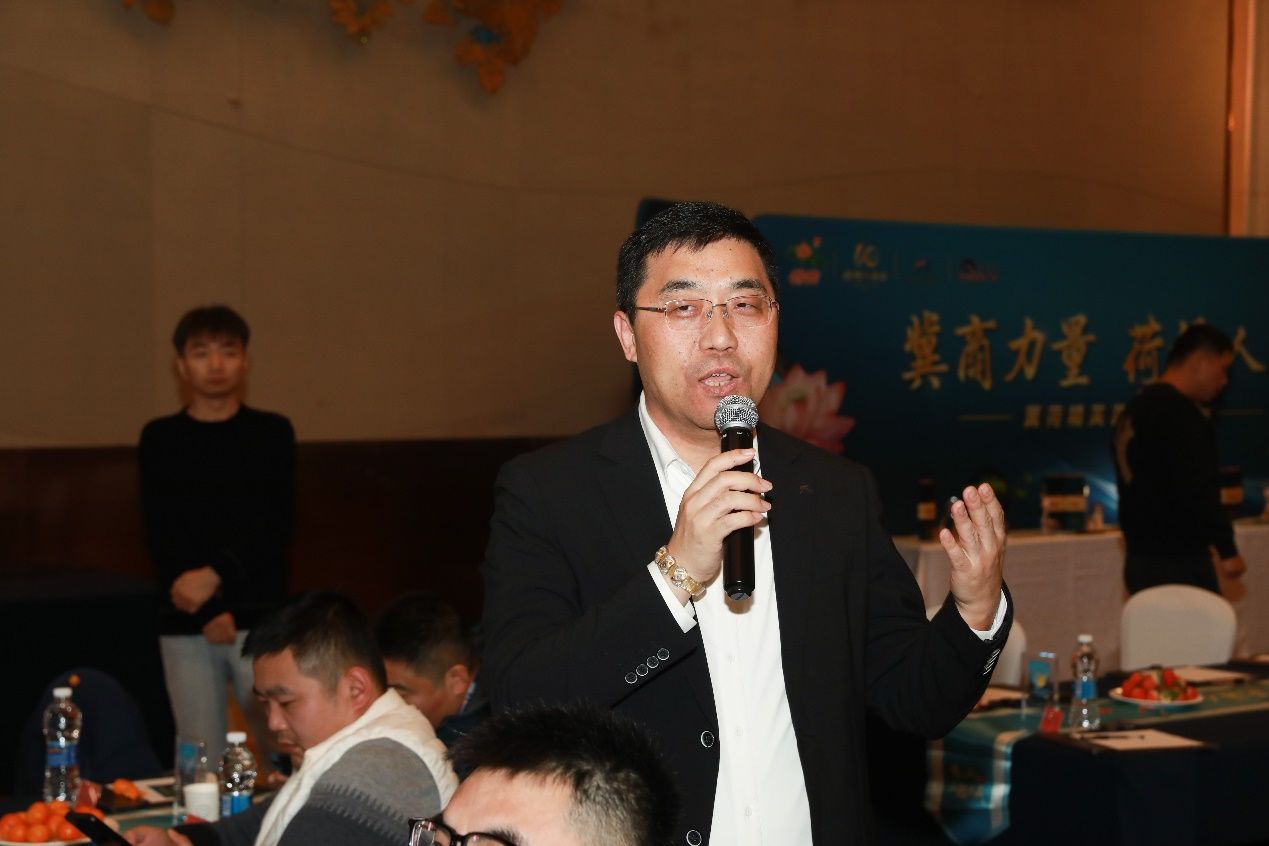 参会企业家踊跃发言,表达对荷花品牌的认可。图为常州市河北商会秘书长李新在互动交流环节发言。